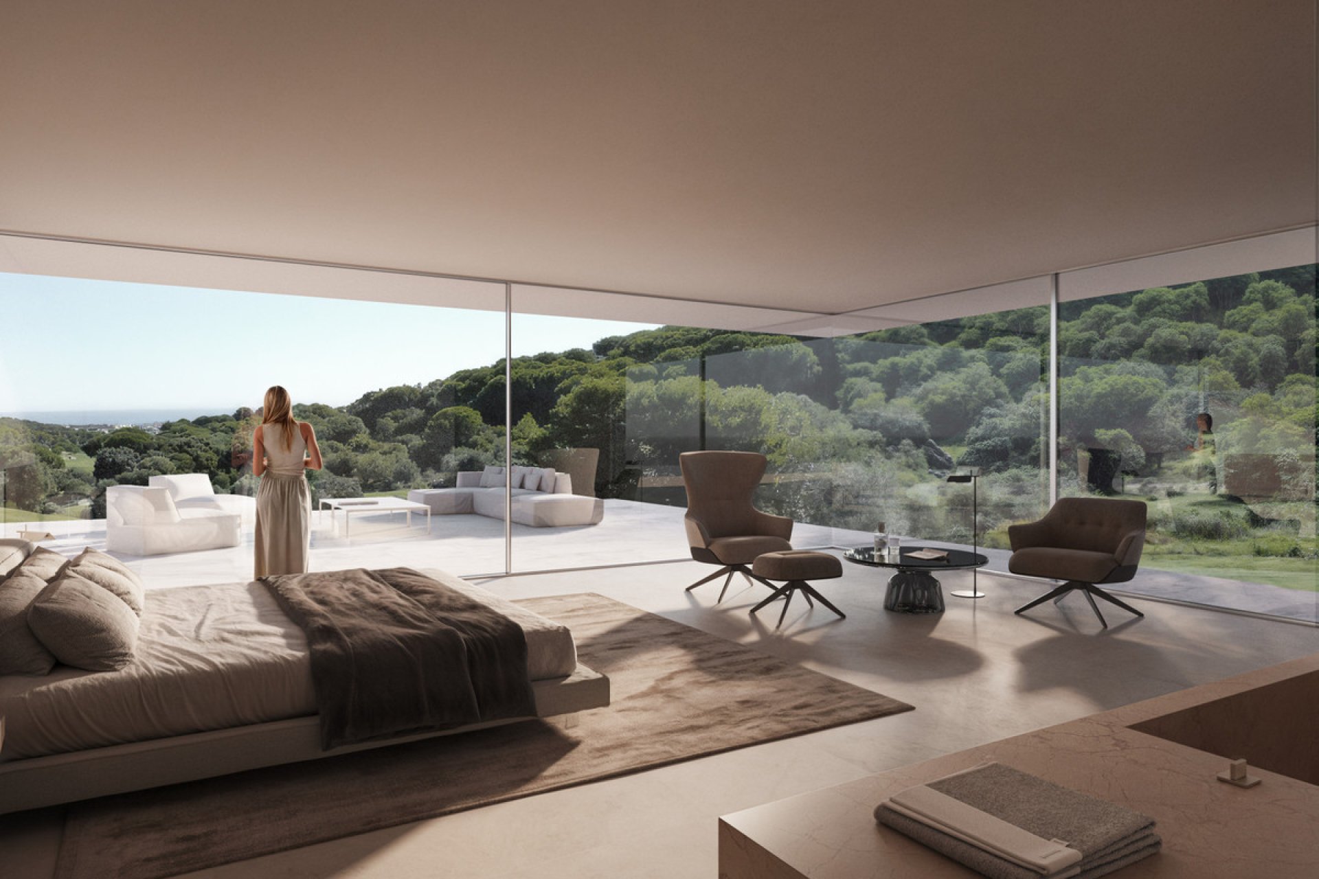 La propiedad cuenta con cinco lujosos dormitorios, incluyendo dos suites principales, y ocho baños. Las comodidades exteriores incluyen una gran piscina infinita con área de playa y espacios exteriores para comer y vivir, perfectos para el entretenimiento. Hay un cine privado, una biblioteca dedicada y extensas terrazas exteriores que suman más de 850 m². La casa también incluye un amplio garaje, acceso para automóviles y múltiples terrazas cubiertas y descubiertas, ofreciendo lo mejor de la vida interior-exterior.