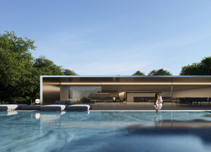 Dividida en varios cuartos conectados en mosaico, la planta principal de la casa alberga el vestíbulo, sala de estar, área de cocina de exhibición y cocina sucia, dormitorio principal con espacio de estar privado, biblioteca, vestidor y baño, 3 dormitorios adicionales y oficina. Esta planta se extiende con elegancia hacia un generoso espacio exterior con una terraza de 116.91 m², revelando vistas de la piscina exterior de 11 metros de largo, extendiéndose de manera impresionante y el exuberante terreno más allá. El área de bienestar de la casa comprende gimnasio interior, sauna y piscina. La planta cubierta también cuenta con una majestuosa terraza de 227.59m² con espejos de agua para disfrutar y enamorarse. La casa de huéspedes de esta mansión cuenta con un espacio de planta abierta con sala de estar, cocina con isla de cocina de exhibición, 2 dormitorios, oficina y terrazas privadas de 63m², mientras que el sótano ofrece 2 dormitorios adicionales, un área de ocio, una sala de cine, área de servicio con dormitorio, lavandería, trastero y espacio de garaje.