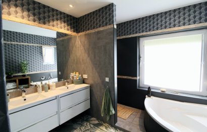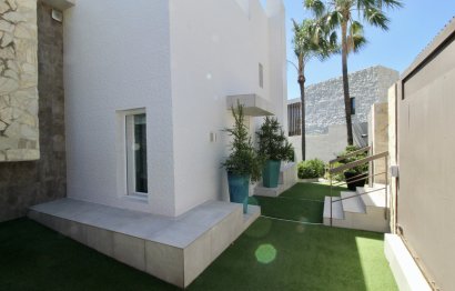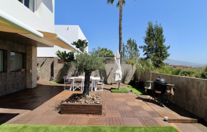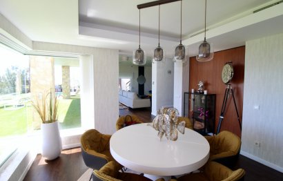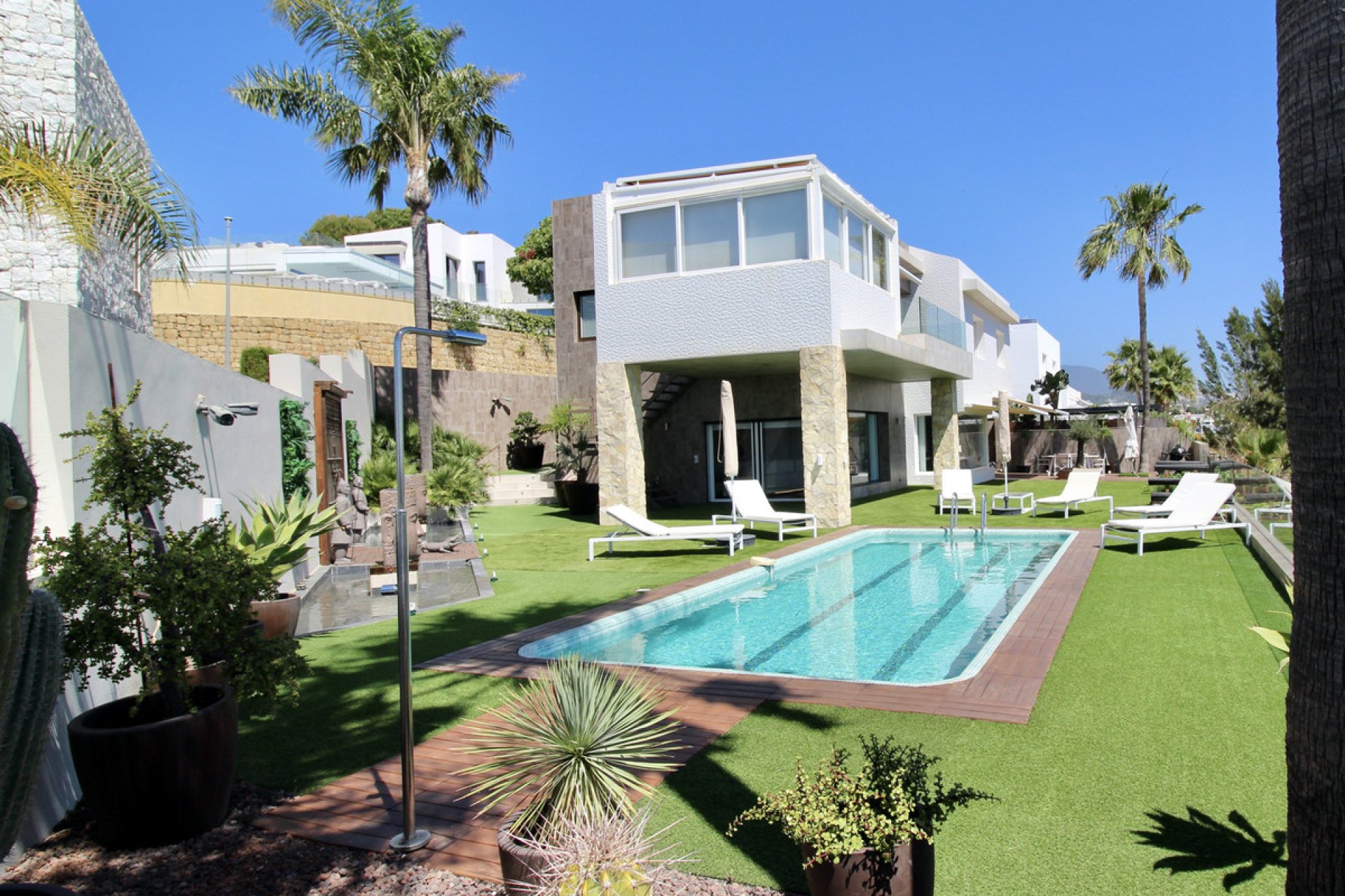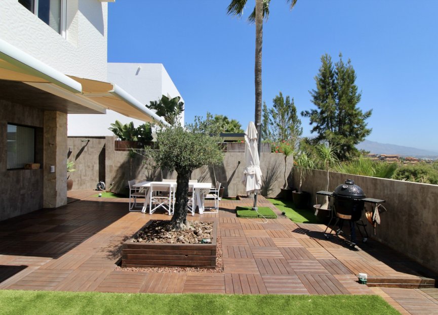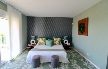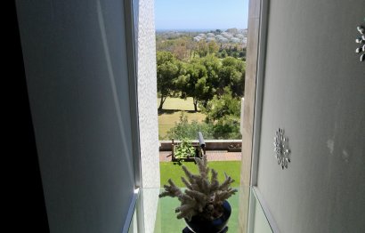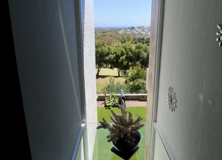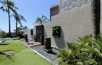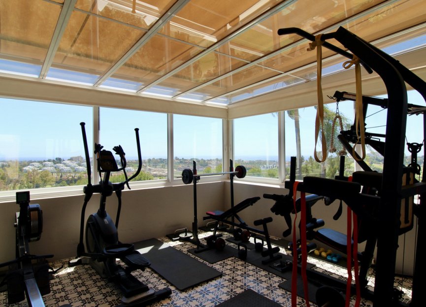 Villa de estilo mediterraneo en primera linea de golf en Marbella / Benahavis con fantasticas vistas al mar y a Gibraltar. 626m2 de parcela a un nivel, esplendido jardin, piscina privada y jacuzzi extrior. Desde la entrada principal con puertas de madera, se llega a un elegante salon con chimenea y comedor separado, ambos con accesso a la terraza cubierta. La amplia y moderna cocina tiene espacio para una zona de desayuno. En la primera planta está el dormitorio principal con accesso a la gran terraza de donde hay unas vistas maravillosas. Hay dos dormitorios mas en la misma planta. Hay tambien un apartamento con entrada propia. Hay suelo de madera en la primera planta, lo demas hay suelo marmol, suelo radiante en los cuartos de baños. Hay un aparcamiento cubierto para 2 coches. Villa en venta en Benahavis - Costa del Sol - Andalucia - España.