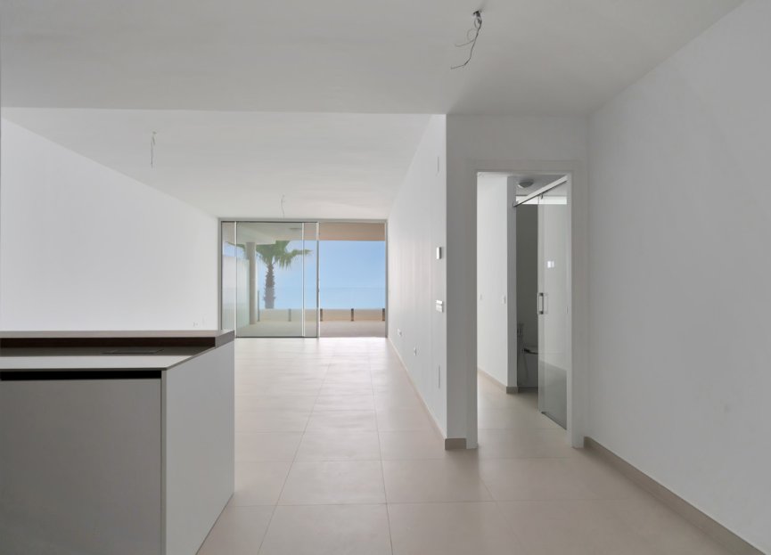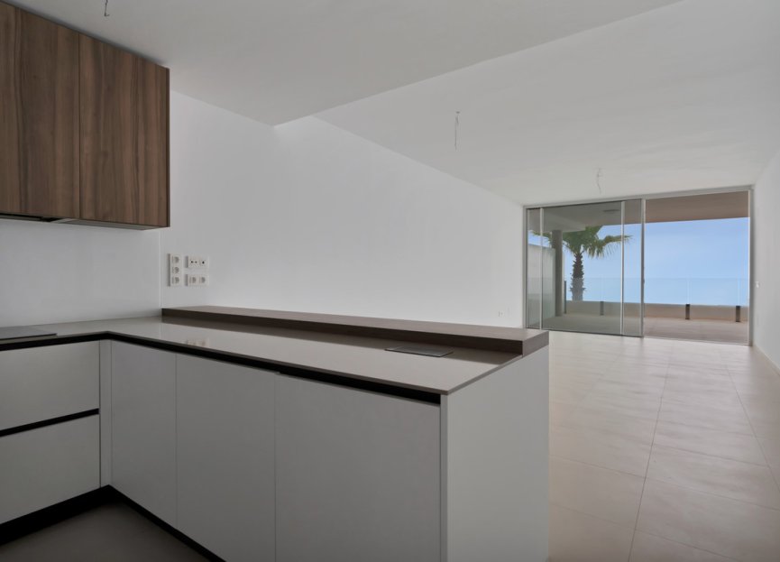 La propiedad cuenta con un salón/comedor luminoso y espacioso con grandes ventanas y acceso a una vasta y serena terraza. El área de estar ofrece hermosas vistas al mar desde el interior.