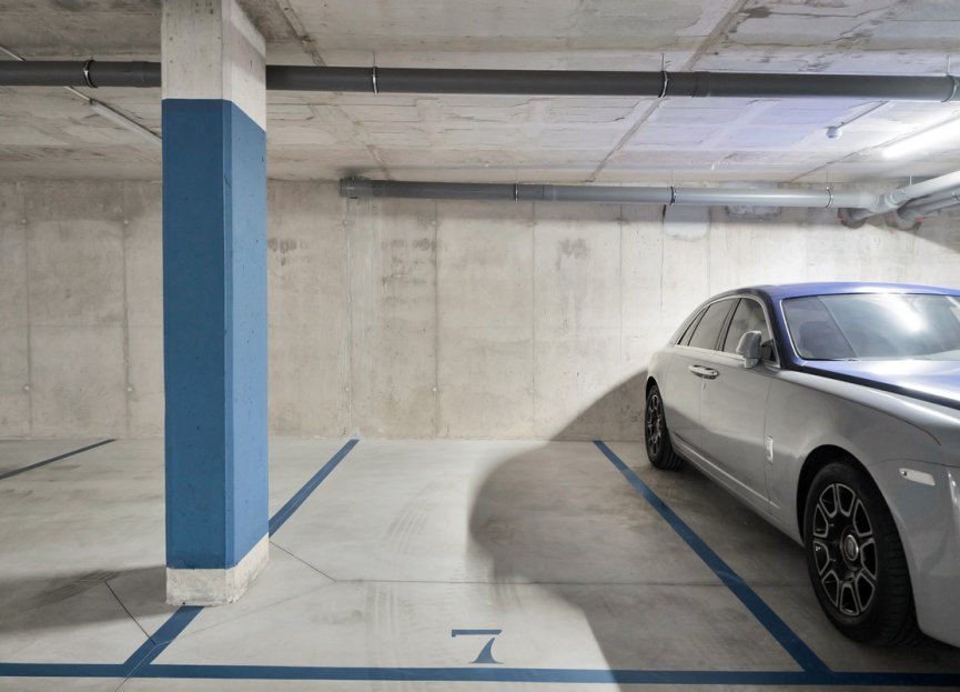 Dos plazas de aparcamiento subterráneo cubiertas y un trastero están incluidos en el precio. El apartamento no ha sido ocupado desde la finalización de la construcción, lo que le permite amueblarlo según su propio gusto.