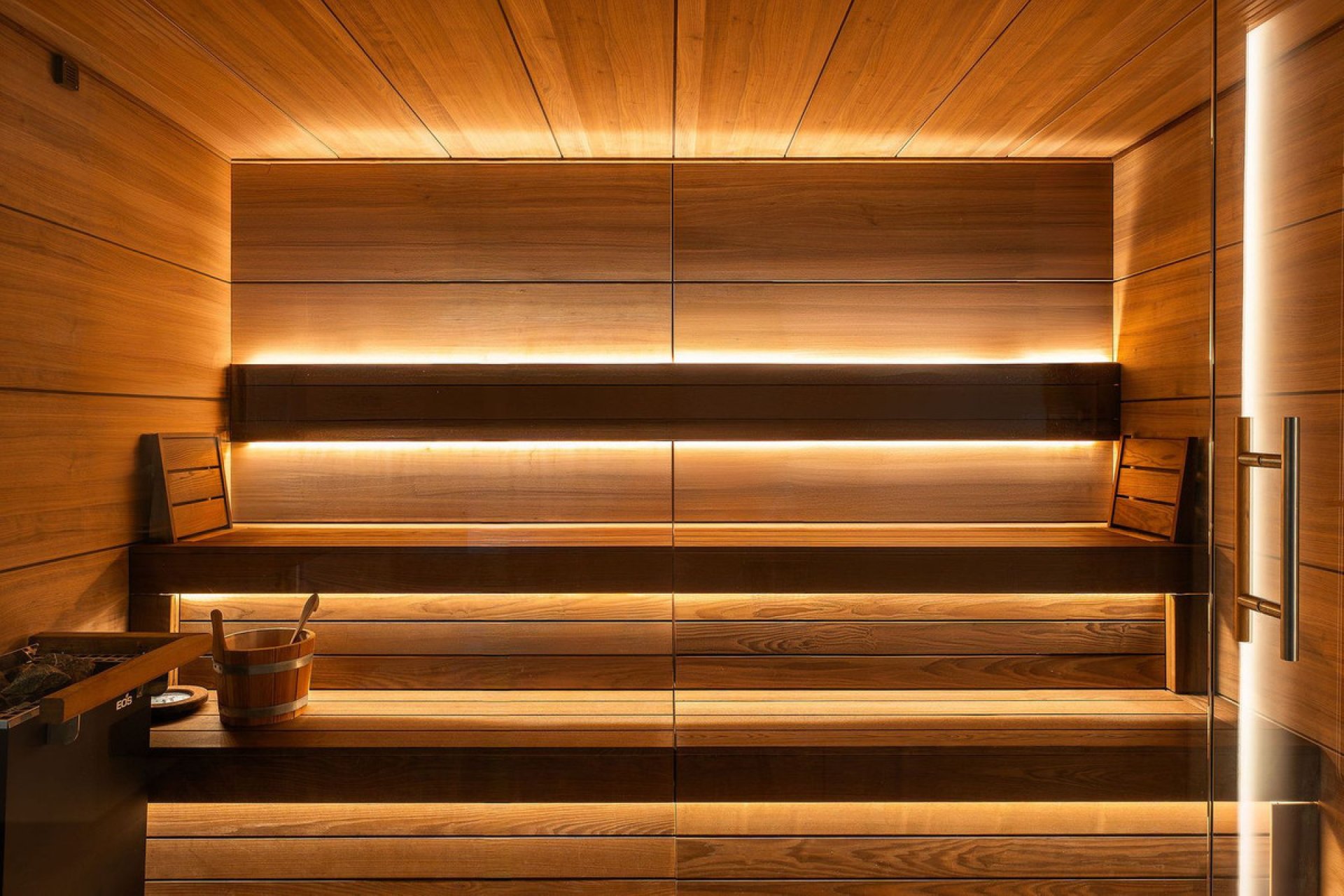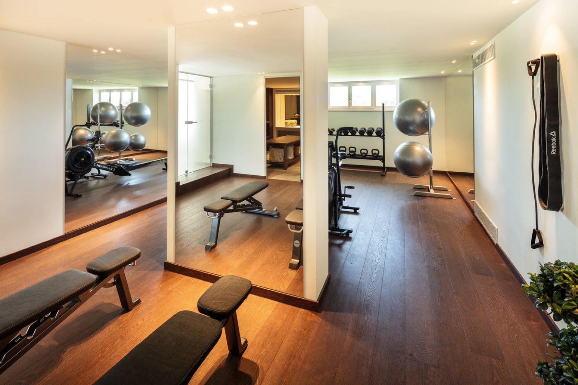 En la planta baja se encuentra un cine en casa, gimnasio, sala de masajes, sauna, baño turco, lavandería y garaje para dos coches más dos dormitorios con baño en suite.