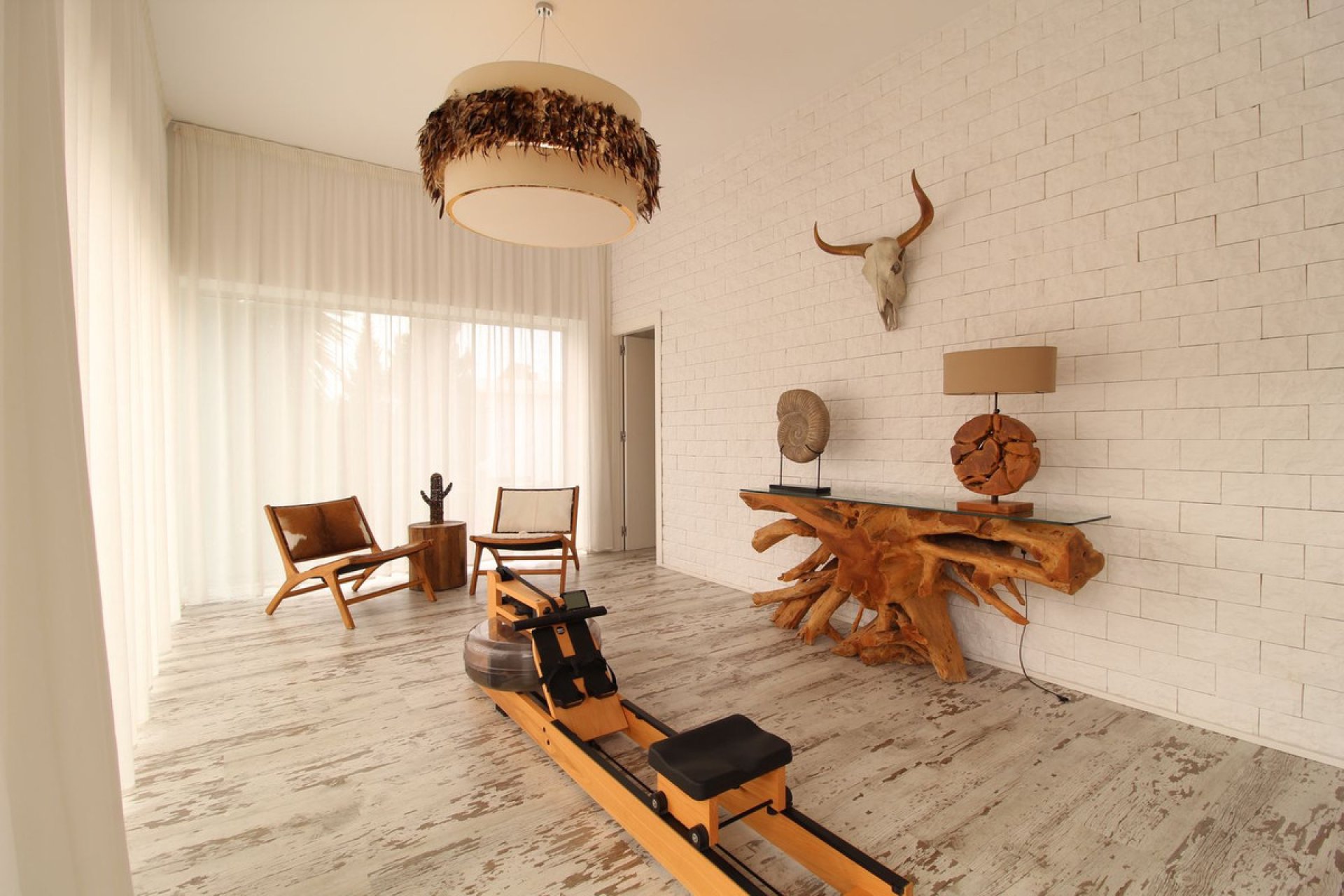 Al entrar en el acogedor vestíbulo, inmediatamente se percibe la sensación de amplitud, con la zona de estar desplegándose frente a ti. A la izquierda, la cocina abierta, bellamente diseñada, emana un encanto natural ibicenco, un estilo que se refleja en toda la villa.