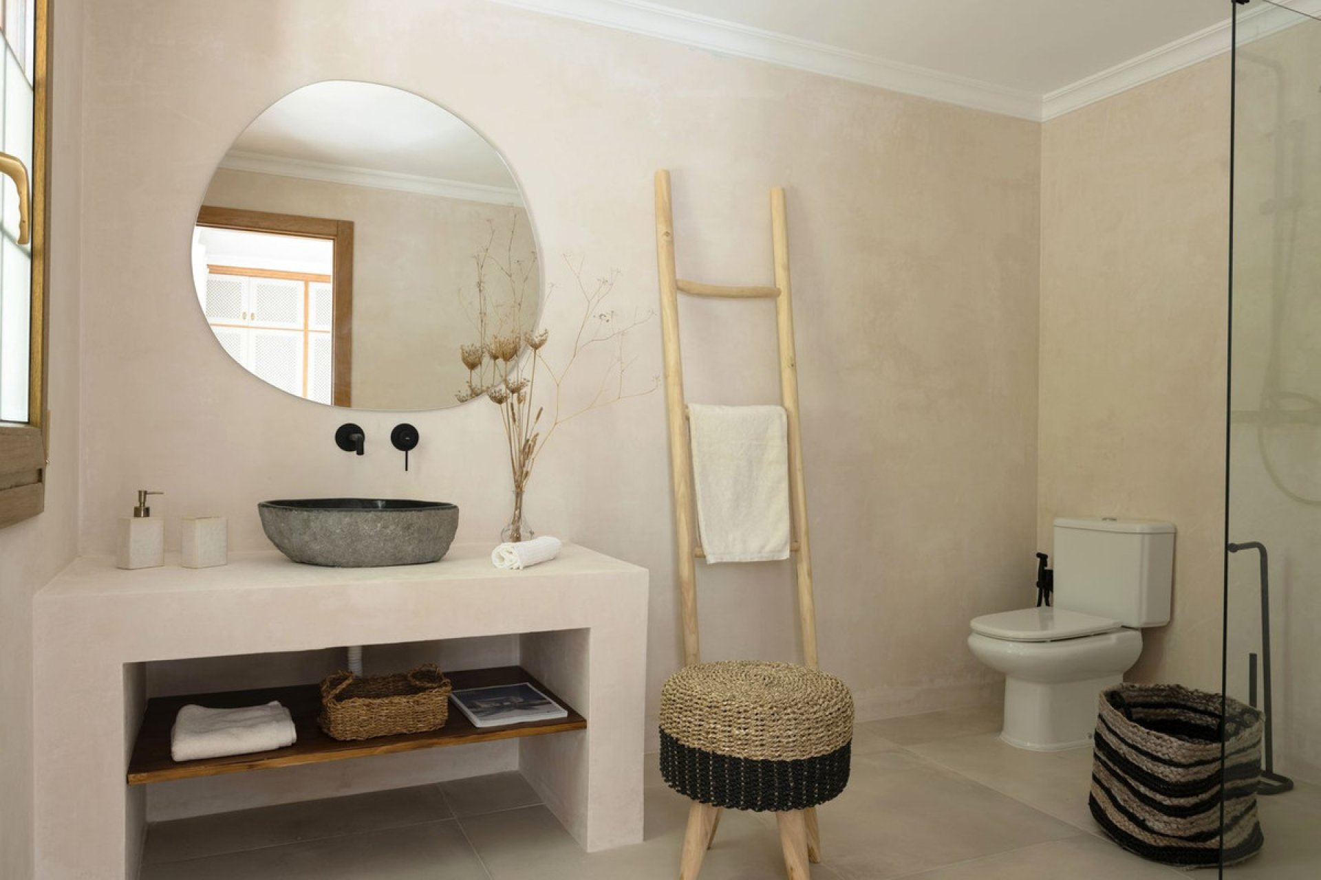 Los cinco dormitorios, todos con baños en-suite, ofrecen un alojamiento lujoso y confortable. Además, hay dos áreas al aire libre ideales para el ocio y la relajación, incluida una zona junto a la piscina con cómodas hamacas y un exuberante jardín privado.