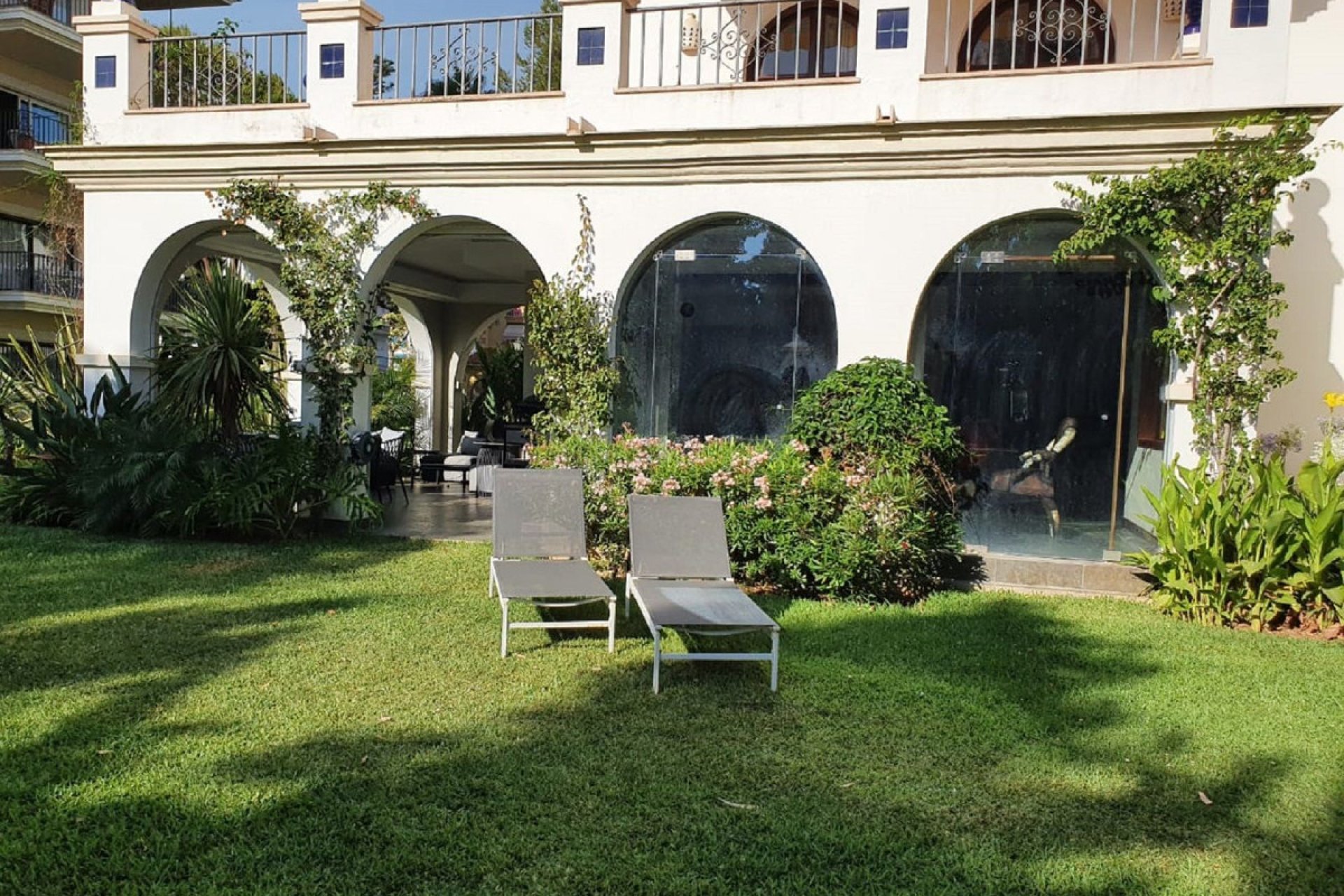 Fantástico apartamento de esquina, cada habitaciones tiene su terraza, coge toda la esquina del bloque, acaba de ser reformado totalmente con un estilo muy personal y con los materiales de la mejor cualidad, el apartamento ofrece 3 dormitorios con dos baños, un enorme salón abierto a las terrazas cubiertas dando un gran espacio al salón comedor cocina terraza. Un gran jardín con sus 2 piscinas, residencia de playa con un acceso directo a las playa y marina de Puerto Banus y sus entretenimientos. Pedir una visita.