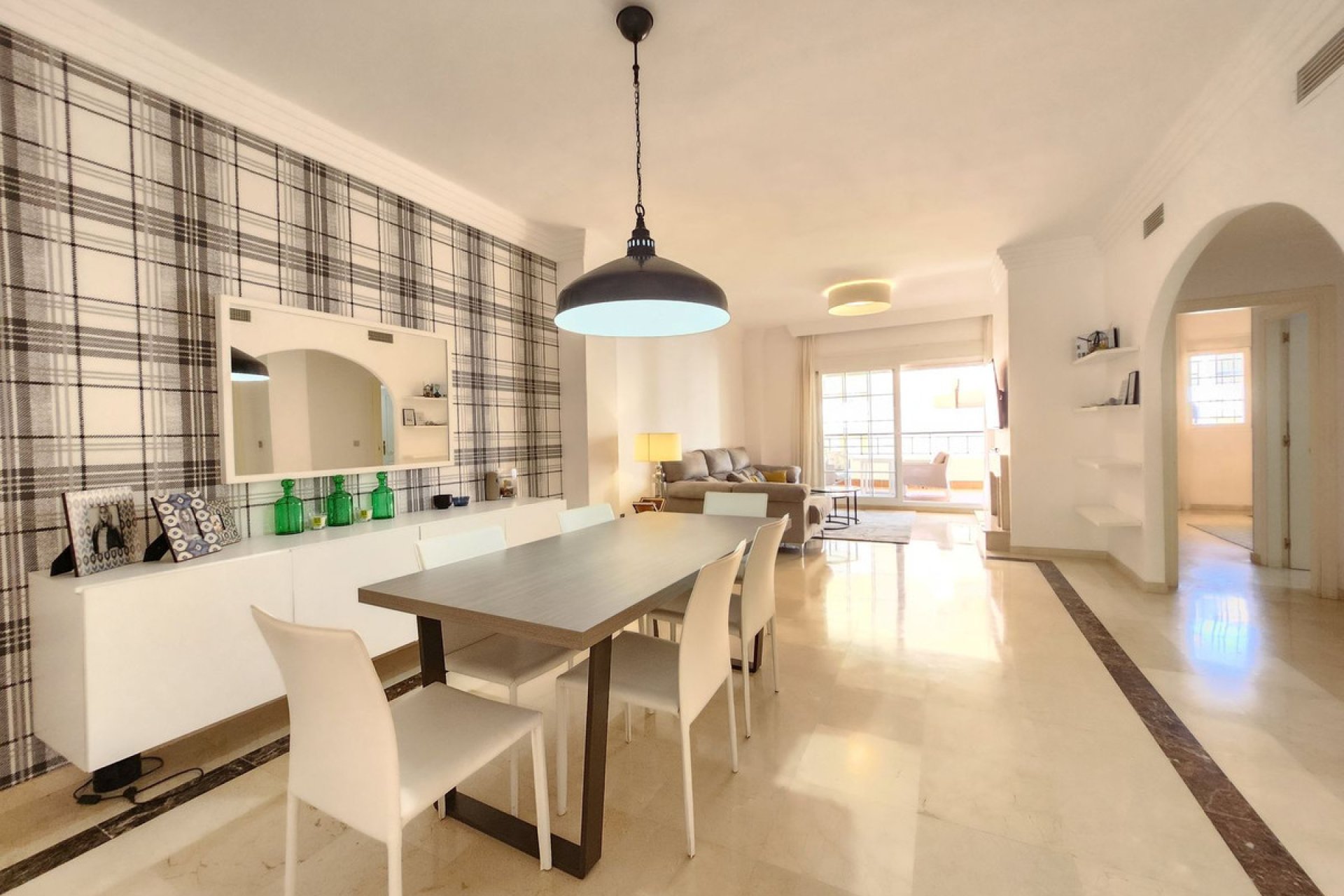 Este elegante apartamento ubicada en Nueva Andalucía, Marbella, ha sido completamente reformado y ofrece un espacio moderno y sofisticado. Con 150 m² construidos, la vivienda cuenta con dos amplios dormitorios y dos baños completos, diseñados con un estilo contemporáneo y acabados de alta calidad.