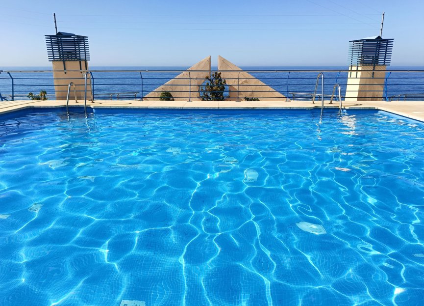 Pool with grass on the roof, with panoramic views of the sea and the mountains.