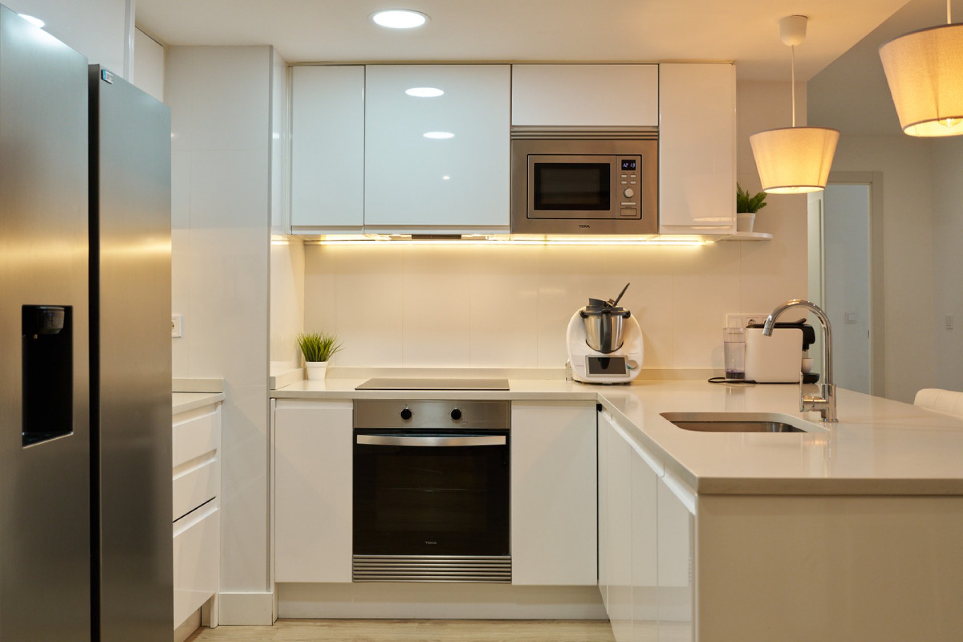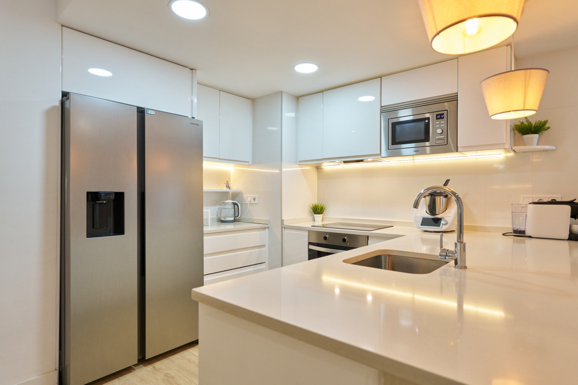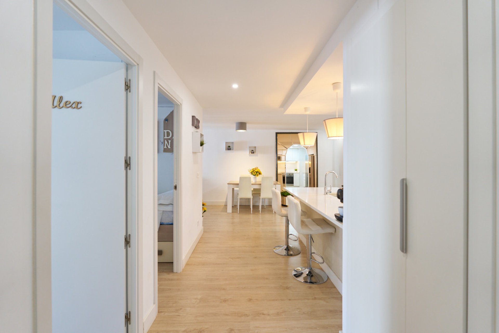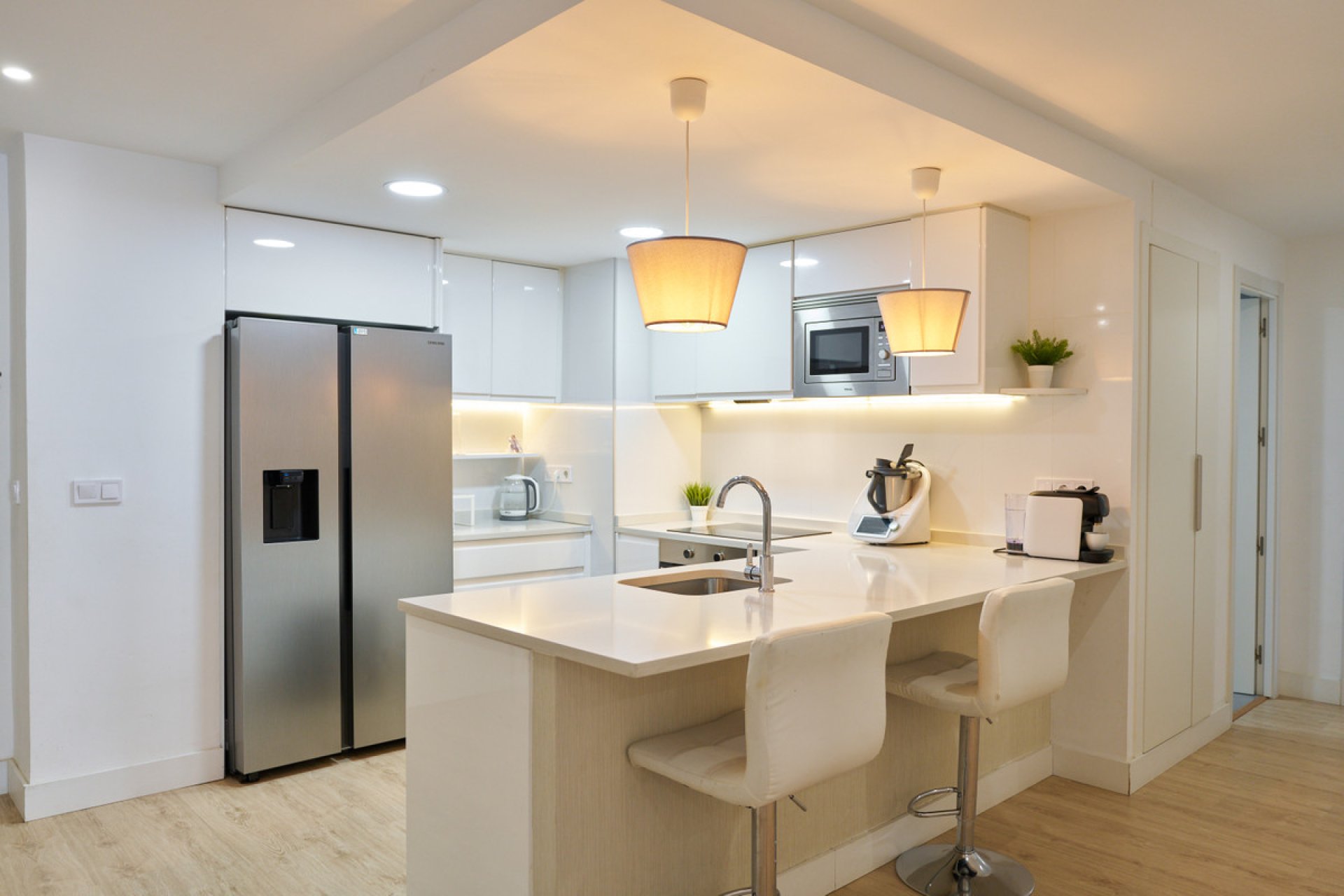 With 146 m² of space, the apartment features three bedrooms and two modern bathrooms, one of which is en suite. Every corner has been crafted with high-quality finishes, and the warm, intelligent lighting creates a cozy ambience, highlighting the beauty of the wooden floors that flow throughout the home. Every detail has been thoughtfully designed to create a stylish and functional retreat.