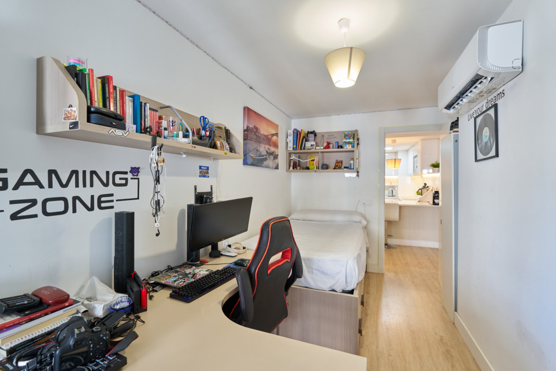 Enjoy your private terrace, perfect for soaking in the fresh air while admiring unobstructed views of the city and mountains. The modern kitchen, fully equipped with top-of-the-line appliances, offers a sleek and stylish environment for culinary exploration.