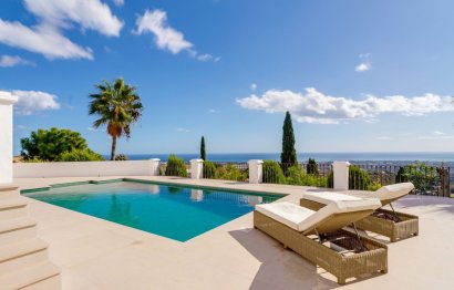 Presenting a State of the Art Contemporary luxury villa nestled on a secluded and serene plot, offering breathtaking golf and partial sea views. This south-east facing property gracefully perches on the rocks, commanding stunning vistas of the first fairway at Marbella Club Golf Resort.
