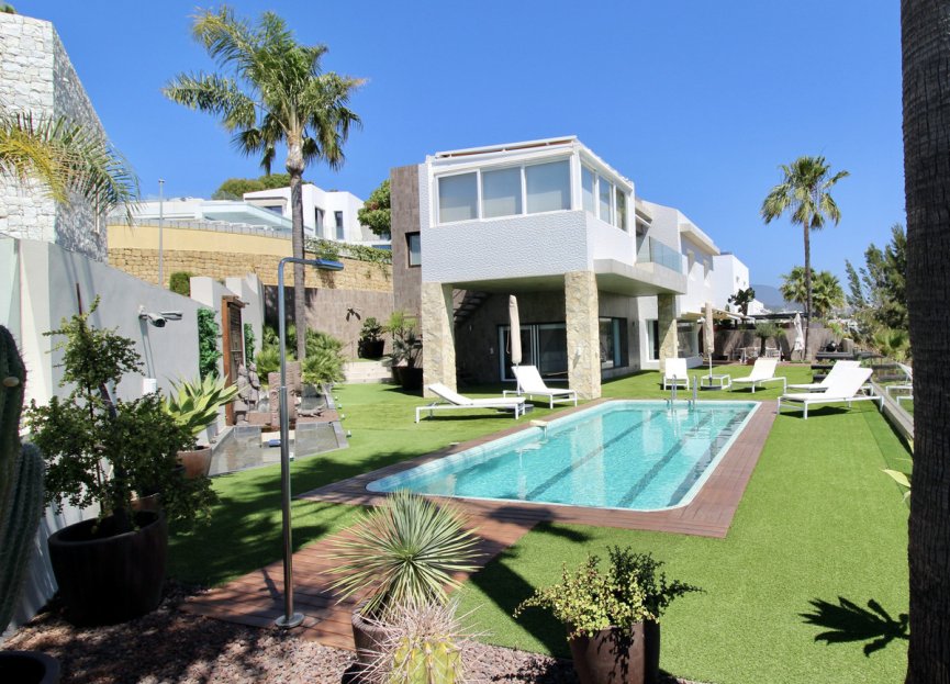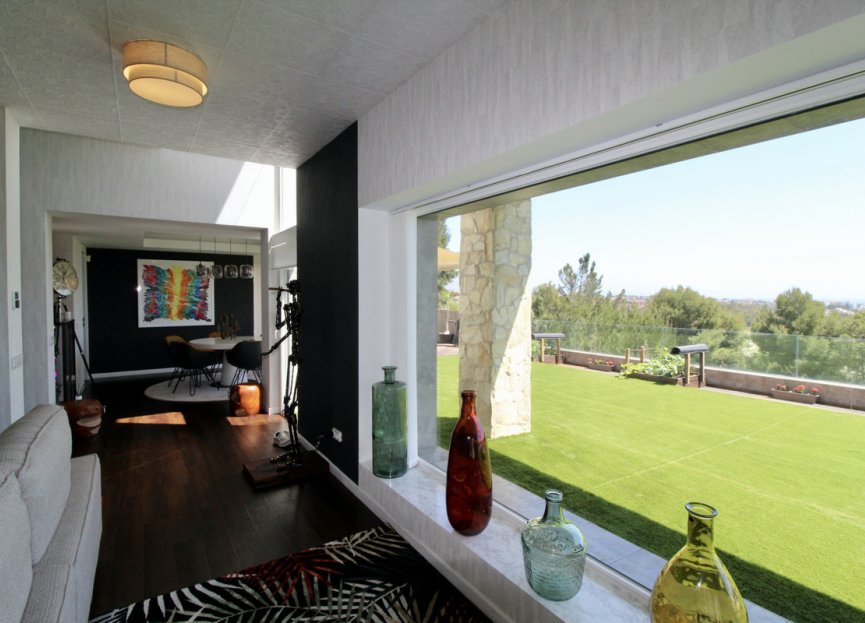 Mediterranean style villa on the frontline golf course of Atalaya with fantastic sea views and views to Gibraltar. 626m2 plot at one level, splendid garden, private pool and whirlpool. From the main entrance you get to an elegant living room with fireplace and separate dining room, both with access to the covered terrace. The large modern kitchen has room for a breakfast area. On the first floor is the master bedroom with access to the large terrace from which you have wonderful views. There are two more bedrooms on the same floor. There are hardwood floors on the first floor, the rest is marble floor, underfloor heating. There is a parking for 2 cars and a seperate one bedroom apartment. Villa for sale in Benahavis - Costa del Sol - Andalucia - Spain.