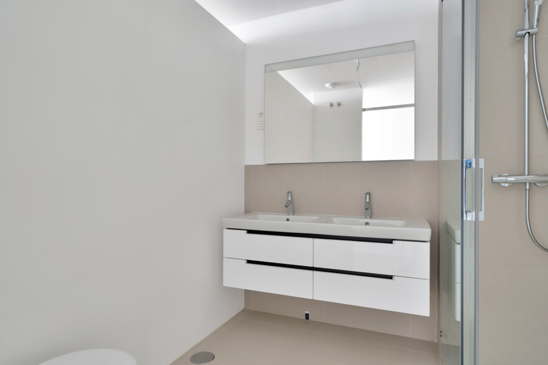 The apartment includes three spacious bedrooms with fitted wardrobes. The master bedroom, which has an en-suite bathroom, and one other bedroom have access to the terrace.