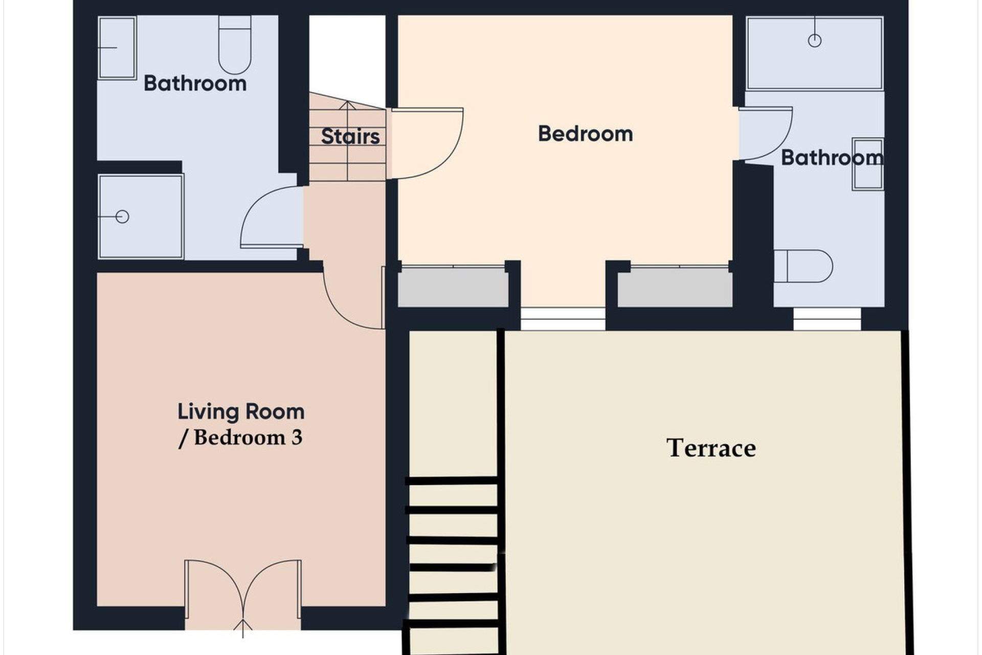 Master bedroom with en suite including a fabulous 'roll-top bath' located on the upper level with it's own terrace with jacuzzi.