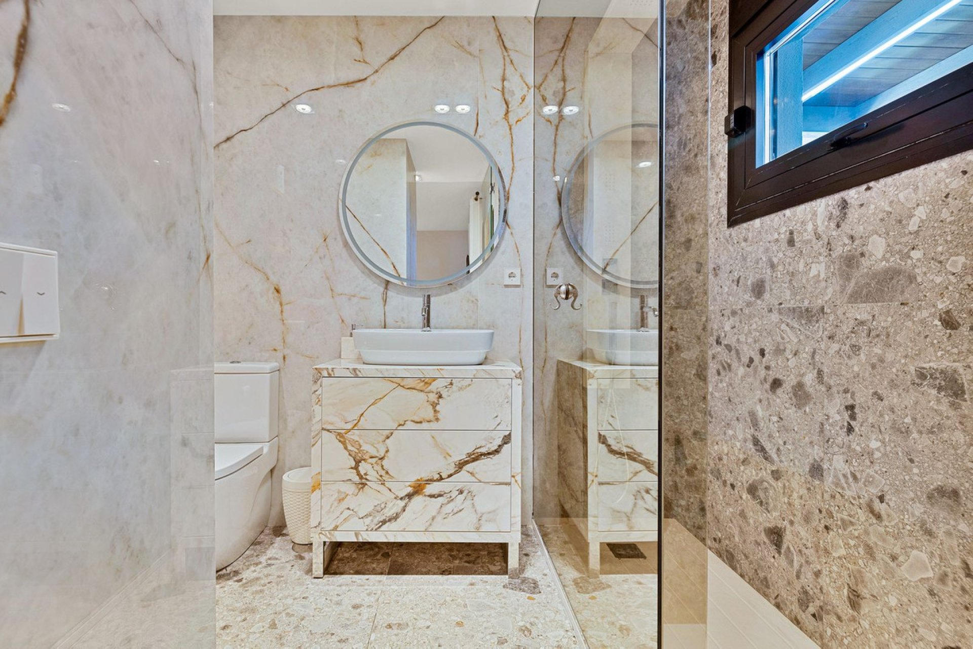 ✅ Master suite of 56 m² with a stylish en-suite bathroom and mirror-effect ceiling.