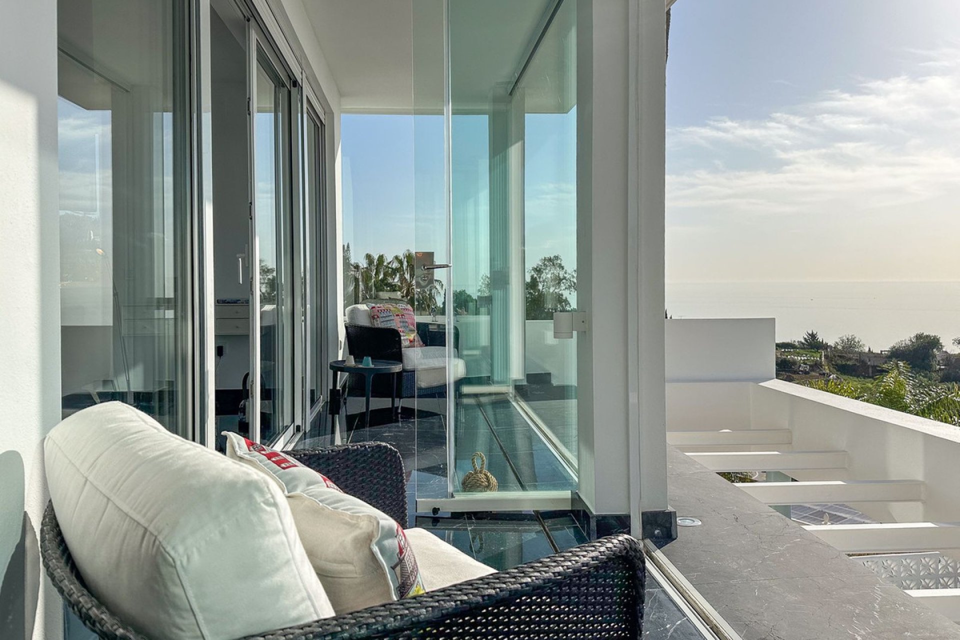 This floor also has direct access to a covered terrace with glass curtains, where you can enjoy both privacy and the incredible views of the sea and Fuengirola.