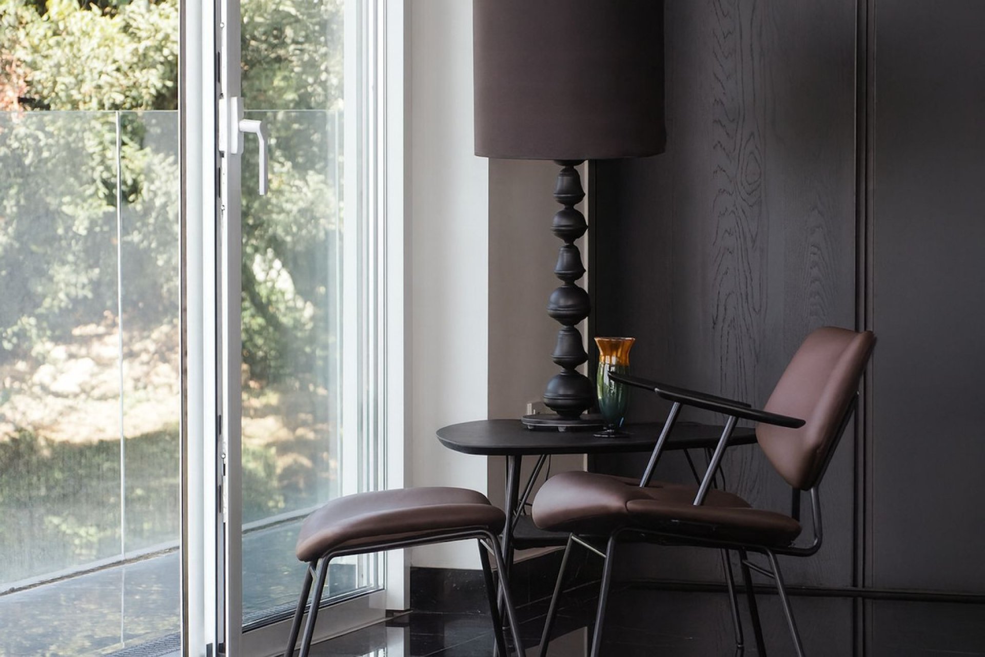 The ground floor features an open kitchen and living area, where light and space take center stage. Here you'll also find two bedrooms, each with their own en-suite bathroom – ideal for family or guests. This floor has direct access to a covered terrace with glass curtains, which can be opened to let the fresh breeze flow in. From here, there is further access to a large private terrace with a beautiful pool, surrounded by vegetation, making the ground floor perfect for outdoor living.