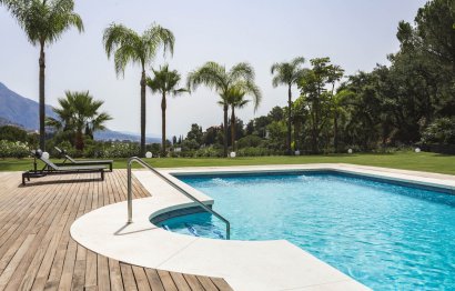 Villa for sale in El Madroñal, Benahavis with 7 bedrooms, 7 bathrooms, 6 en suite bathrooms, 2 toilets and with orientation south/west, with private swimming pool, private garage (5 parking spaces) and private garden. Regarding property dimensions, it has 1,165 m² built and 3,062 m² plot. Has the following facilities mountainside, air conditioning, fully fitted kitchen, utility room, fireplace, marble floors, jacuzzi, sauna, satellite tv, basement, guest room, storage room, gym, alarm, security entrance, double glazing, video entrance, dining room, barbeque, security service 24h, guest toilet, private terrace, living room, study room, separate apartment, country view, mountain view, indoor pool, heated pool, underfloor heating (throughout), automatic irrigation system, security shutters, dolby stereo surround system, laundry room, internet - wi-fi, covered terrace, electric blinds, fitted wardrobes, gated community, garden view, pool view, panoramic view, cinema room, wine cellar, close to golf, uncovered terrace, games room, separate dining room, balcony, spa, excellent condition, recently renovated / refurbished, ceiling heating system, underfloor cooling system, surveillance cameras, guest apartment, office room, individual a/c units, armored door, kitchenette, aerothermics and internet - fibre optic.