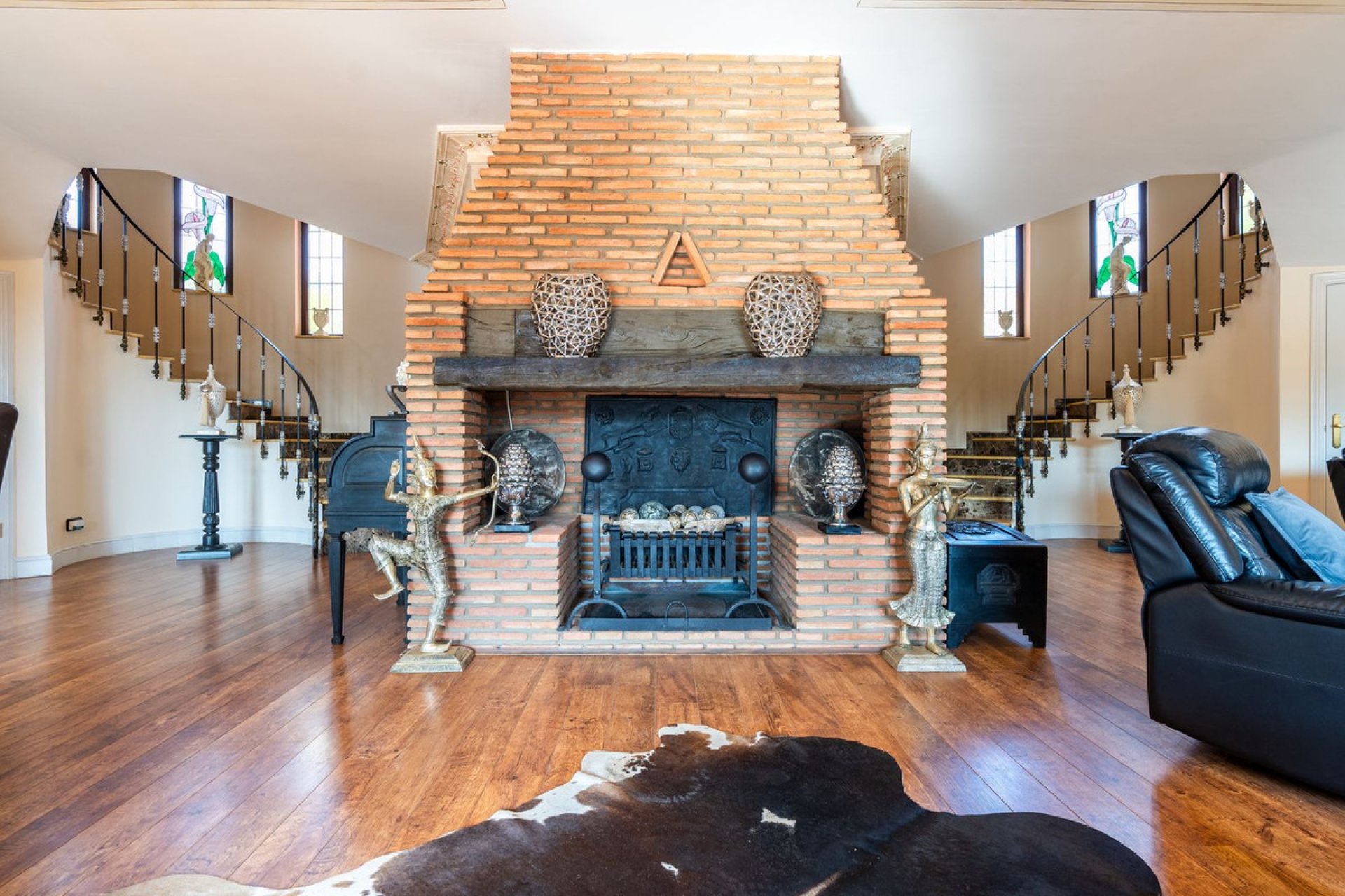 An elegant double staircase is leading to the upper floor with two wings with on each side two double bedrooms with ensuite-bathrooms. In the middle of this floor you will find a true master suite with a sitting area, a luxurious bathroom, a dressing area and a big private terrace overlooking the beautiful view.