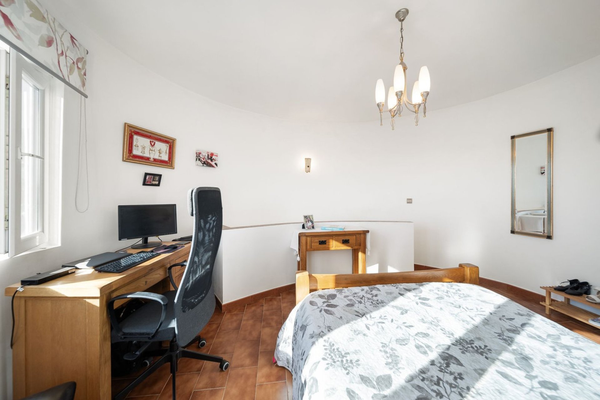 The second bedroom is accessed via a staircase from the living area. This bright and spacious double room features the traditional turret-style design typical of the Monte Alto urbanization and offers lovely sea views.