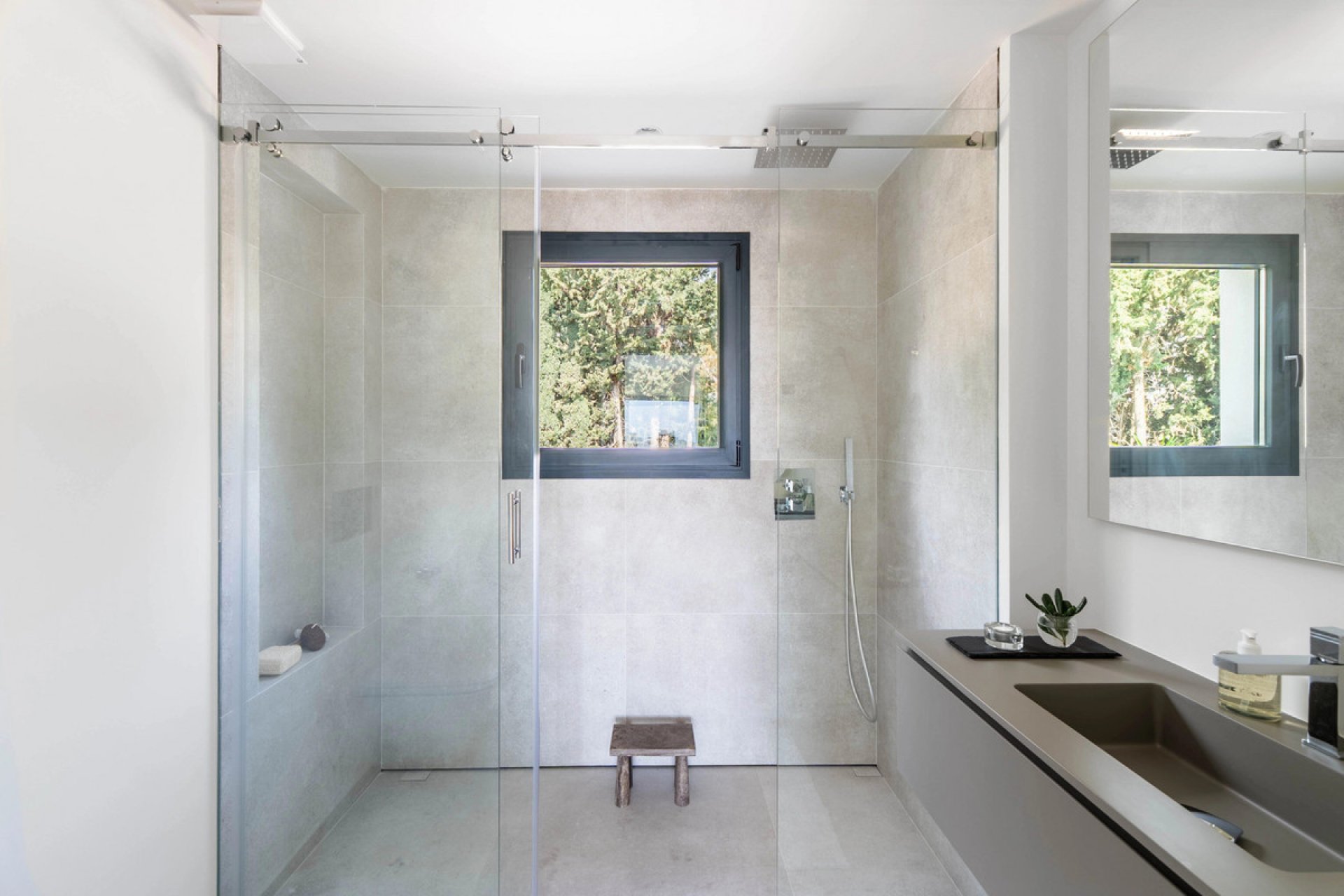 The outdoor spaces are designed for both leisure and entertainment, with a private swimming pool, multiple lounge zones, and a covered terrace perfect for al fresco dining. The manicured garden offers a peaceful atmosphere with picturesque views of the surrounding hills and the Mediterranean Sea—ideal for morning coffee or evening gatherings under the stars.