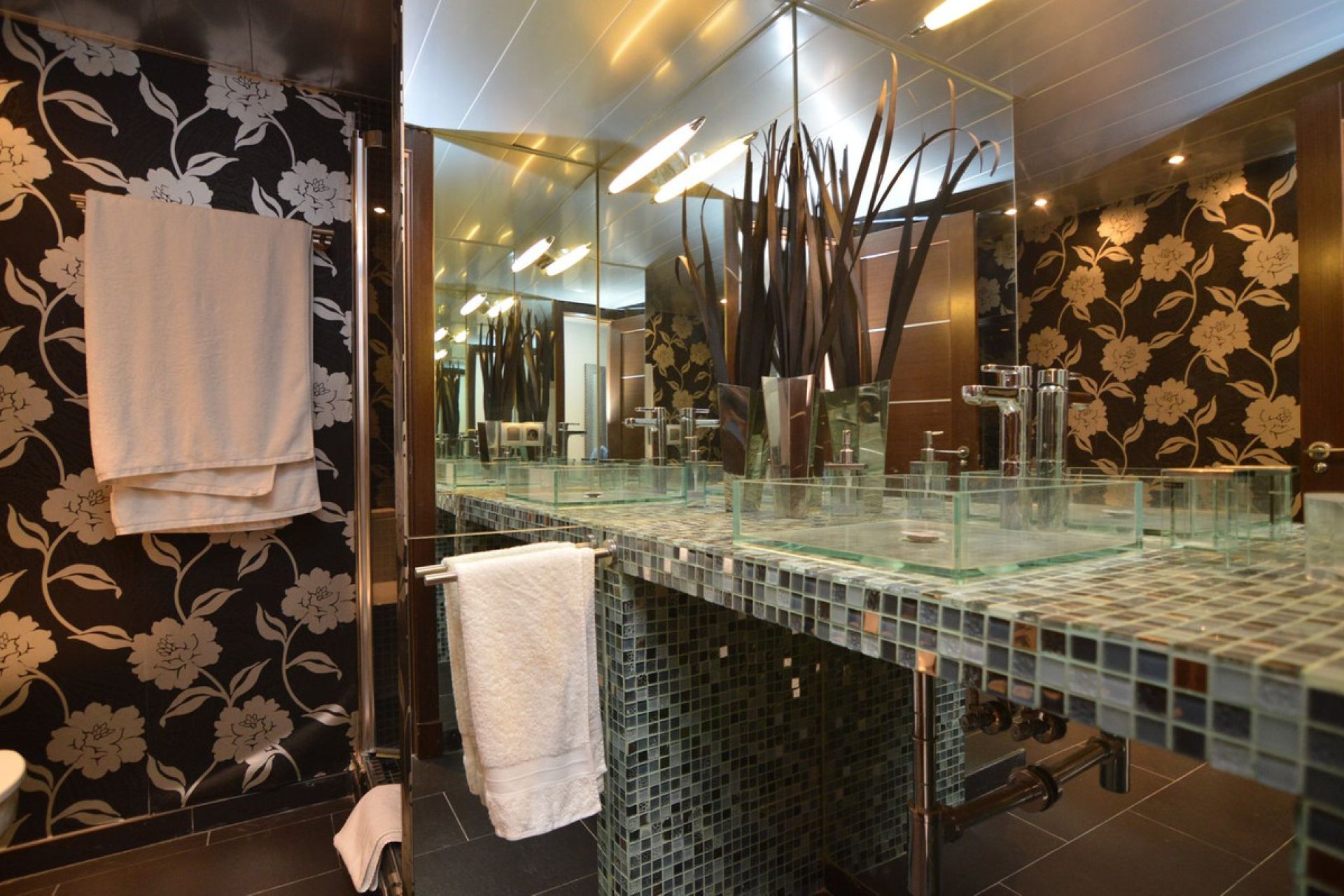 As you enter the property you will get the feeling of quality and spaciousness, from the entrance hall opens the fully equipped kitchen and the spacious living room with open fireplace, dining area and the terrace overlooking the Mediterranean Sea. 2 bedrooms with orientation to the south (sunlight for most part of the day), 2 bathrooms, master en-suite and small French balcony. The third bedroom with en-suite bathroom is located on the north side of the apartment. All bathrooms have been renovated to very high standards. The price includes a place in the underground garage.