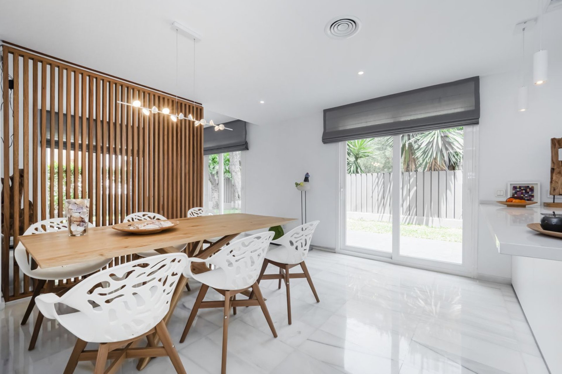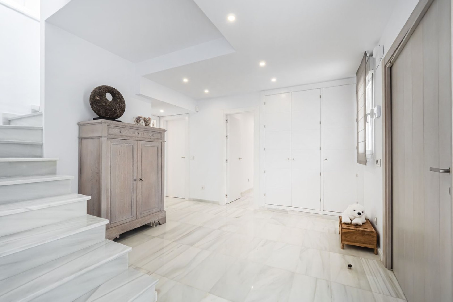 LOCATION, LOCATION, LOCATION. This Dwelling location is an absolute gift, a mere 50m from the sandy Elviria beaches, next to the most glamorous beach bars, eg. "La Plage de Casanis", 5* hotel beach clubs; traditional chiringuitos with the true Andalusian flavours, and all that with abundance of amenities and services such as pharmacy, schools, supermarkets, etc. ... everything one might need to live as a permanent home, or as a holiday property. This independent Villa plot amounts 518sqm, recently renovated to the highest standards both in building materials and construction, with attention to detail (the whole electricity system has been updated and improved, replacement of all the lightning devices, new A/C machinery at the ground floor, changes in the layout of the stairs at the basement to create a new room and a profuse variety of improvements have been made in these renovation works); the house adds up to 334sqm built plus a 43sqm partially covered terrace and a ground floor porch of 48sqm. Finally, a new pool has been built giving the property the icing on the cake. The home is distributed as follows: Entry hall with access to an ample living room with access to the terrace and joined to the dining area and the open plan kitchen with island. Besides, a bedroom with bathroom plus a guest restroom. On the first floor, three complete bedrooms with en suite bathrooms, all of them facing outside. On the basement, room for 4-5 cars, office space/bedroom, laundry room, bathroom and storage room. The property includes an own well. Due to location and features, this is a wise investment for a permanent home or as a holiday home with a huge potential for holiday rental.