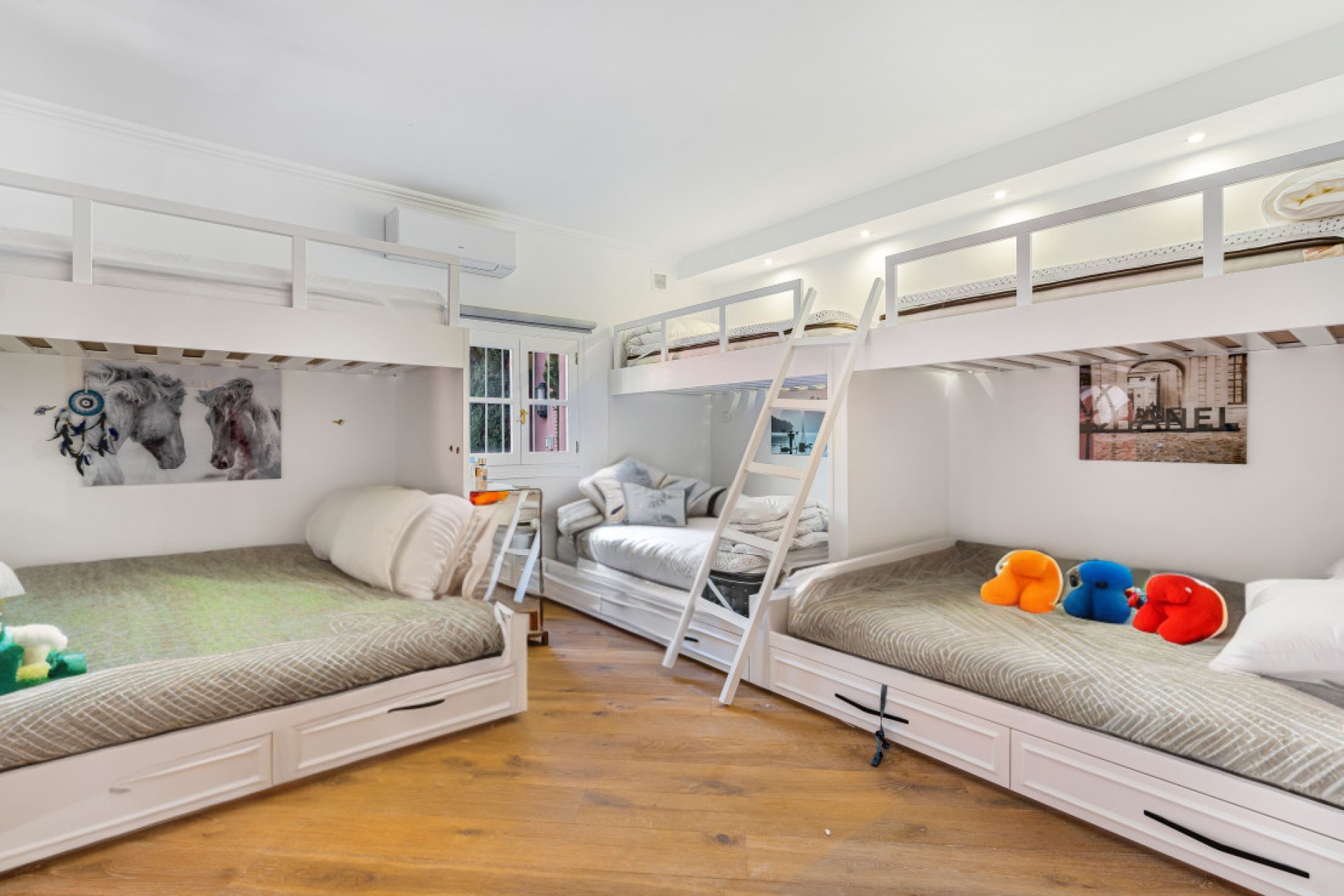 Magnificent six bedroom Villa located in Hacienda Las Chapas, Marbella. This property is close to amenities, golf courses and the beach, with only a short ten minute drive to Marbella. The villa boasts spectacular sea views from both the ground floor and first floor; the entrance level has a spacious open plan living and dining room with built in fireplace, lounge and access to the terrace, garden and private swimming pool; fully fitted kitchen; guest suite; and a guest toilet. The first floor has the master suite with walk in closet and spacious terrace with beautiful views to the sea and pool; four guest suites and a terrace with wonderful sea views. The lower level of the property leads to the gym and spa, complete with bathroom, sauna and Hamam. There is also a storage room; laundry room; and lounge area on this level. Other features include hot and cold air conditioning, double car port, fitted wardrobes and solar panels. There is also an approved project to add an independent guest house of 130m2 with three bedrooms and bathrooms.