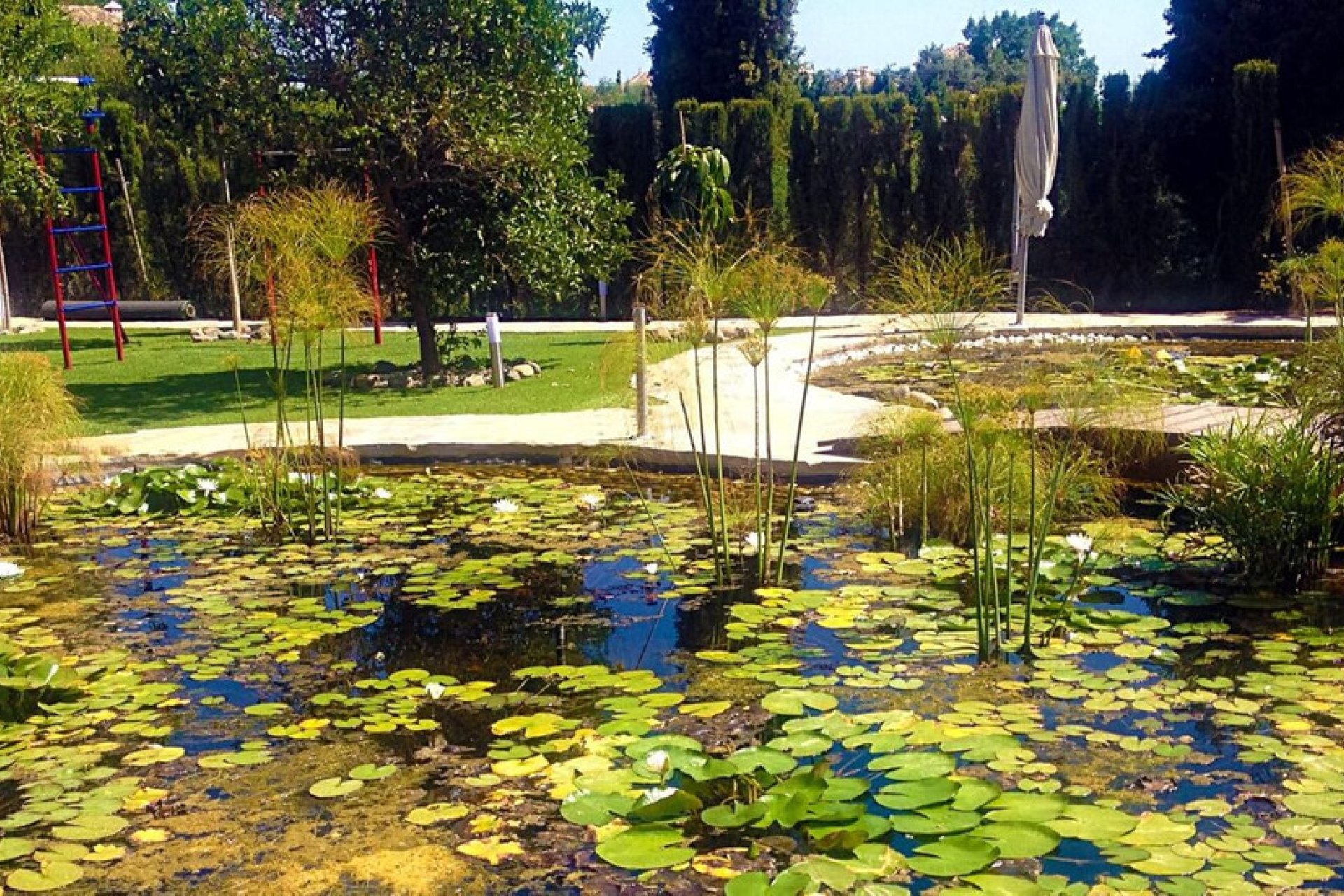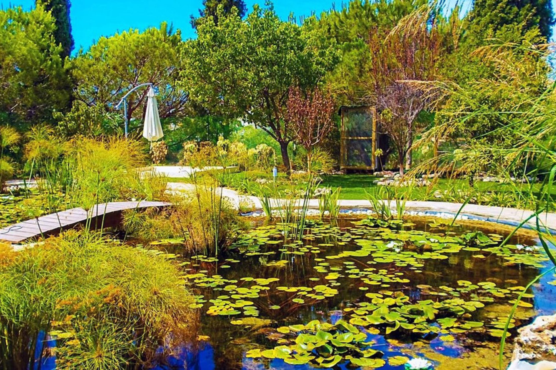 Unique investment opportunity! The house is on one level and has a large garden with a heated pool and its own well. The well has a filter and a 12 m3 underground tank. The house also features a pond with plants, a waterfall, a fountain, underwater lighting and a 10-zone irrigation system. In addition to buildings such as a garage, a workshop and an independent service house with bathroom and kitchen.