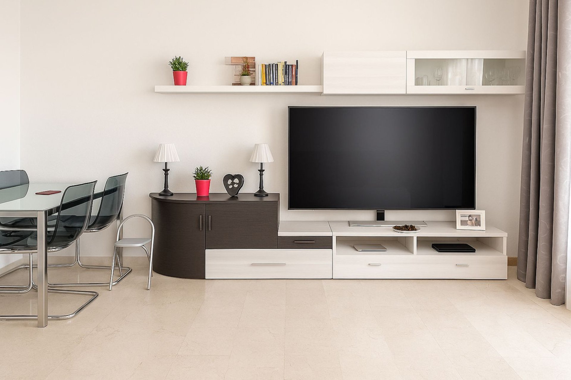 The master bedroom with an en-suite bathroom also has direct access to the terrace. The second bedroom is double. The comfortable dining and living area opens onto a terrace with lovely views of the sunset and the picturesque Miraflores golf course.