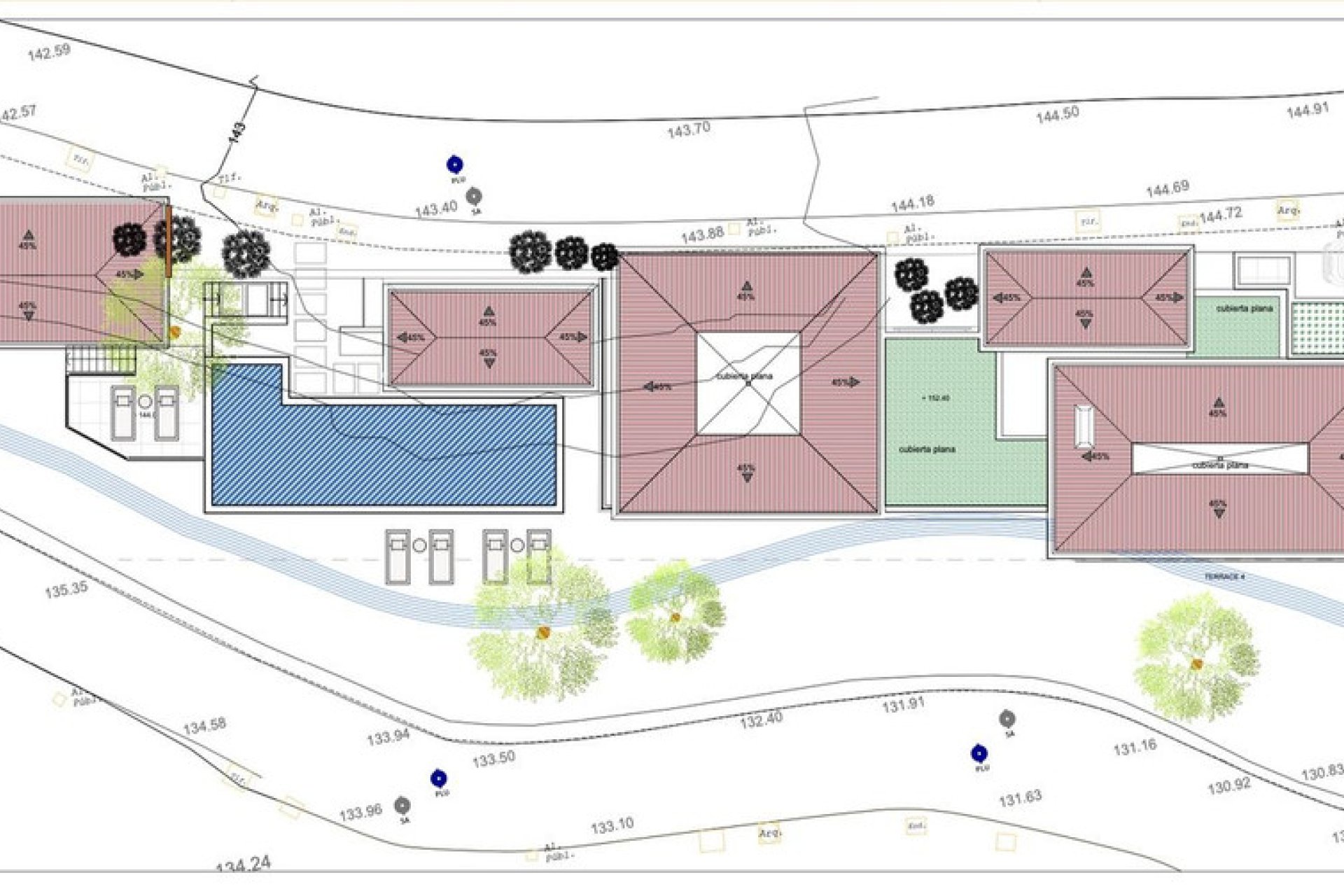 This villa will be nestled on a plot surrounded by forest, with an elongated, south-facing shape, allowing for the most spectacular views and sunlight. The house will have a total of 733 m2 of usable area, of which 387 m2 will be interior, 124 m2 will be covered terraces, 100 m2 will be open terraces, and the remainder will comprise the 66 m2 pool plus parking.