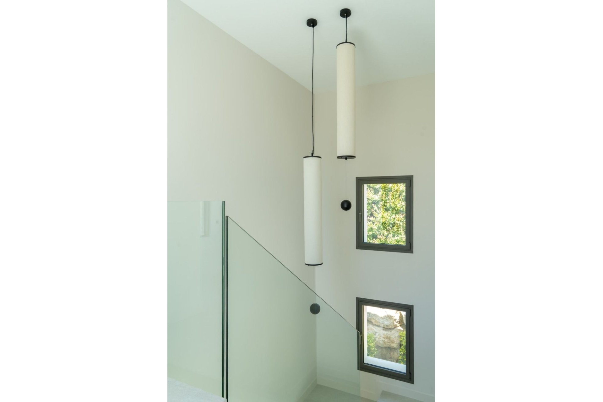 On the ground floor, you will find a welcoming entrance hall, cloakroom, en-suite bedrooms with bathroom and dressing room, a dream kitchen-dining room, a spacious living room and a main porch that opens onto a magnificent outdoor skimmer pool with pre-installation for a heat pump. The upper floor houses the master bedroom with the option of converting the second bedroom into a library and a terrace to enjoy the views. The basement is presented raw, except for the machine room, offering a blank canvas to personalize to your liking.