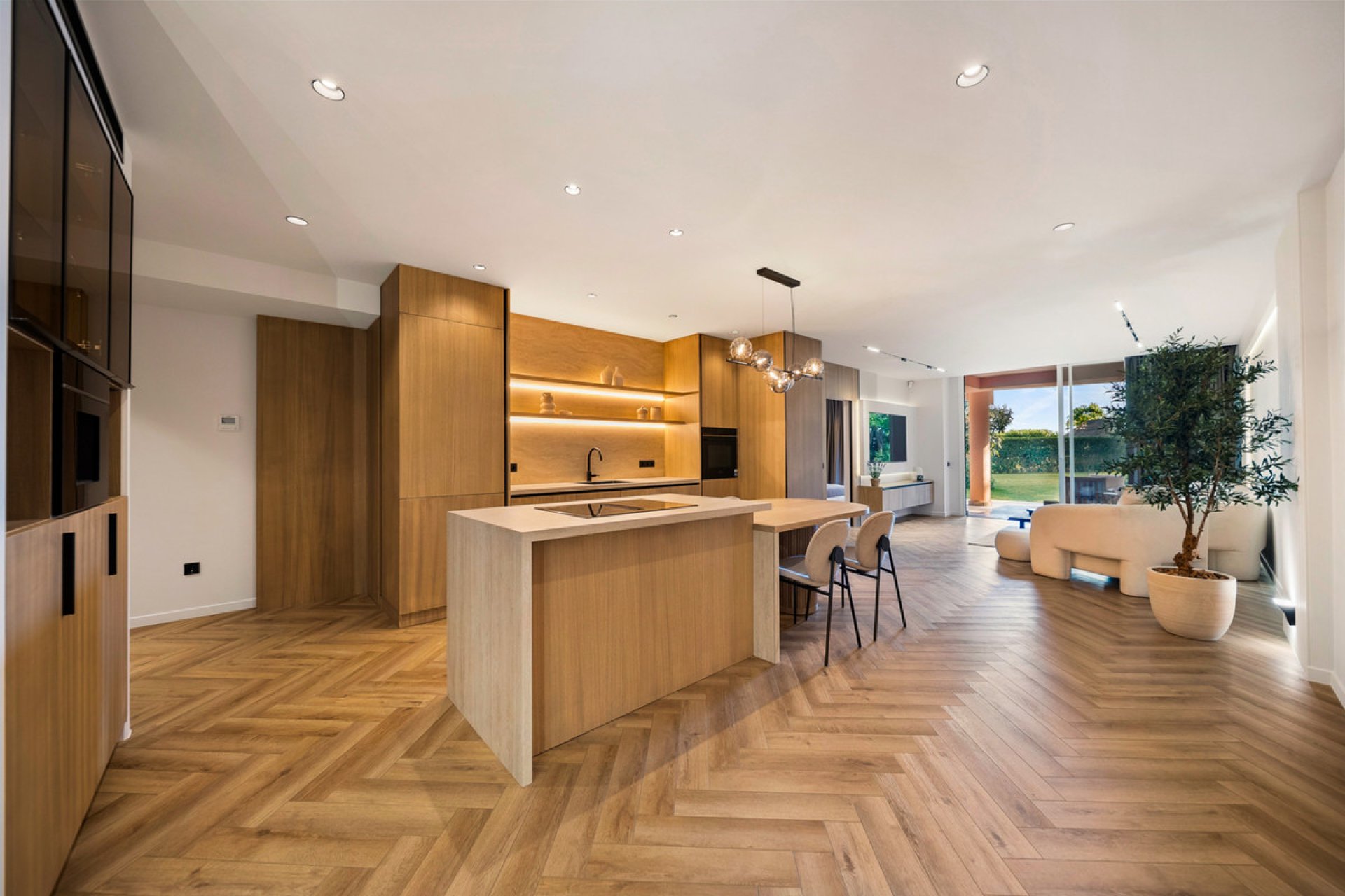 Bathed in natural light from its southwest orientation, this 130 m² residence has been thoughtfully reimagined to the highest standards, offering a seamless blend of contemporary design and timeless elegance. The open-plan layout flows effortlessly into a spacious 32 m² terrace and a beautifully landscaped 45 m² private garden — perfect for al fresco dining, morning coffee, or unwinding as the sun sets over Marbella's Golf Valley.