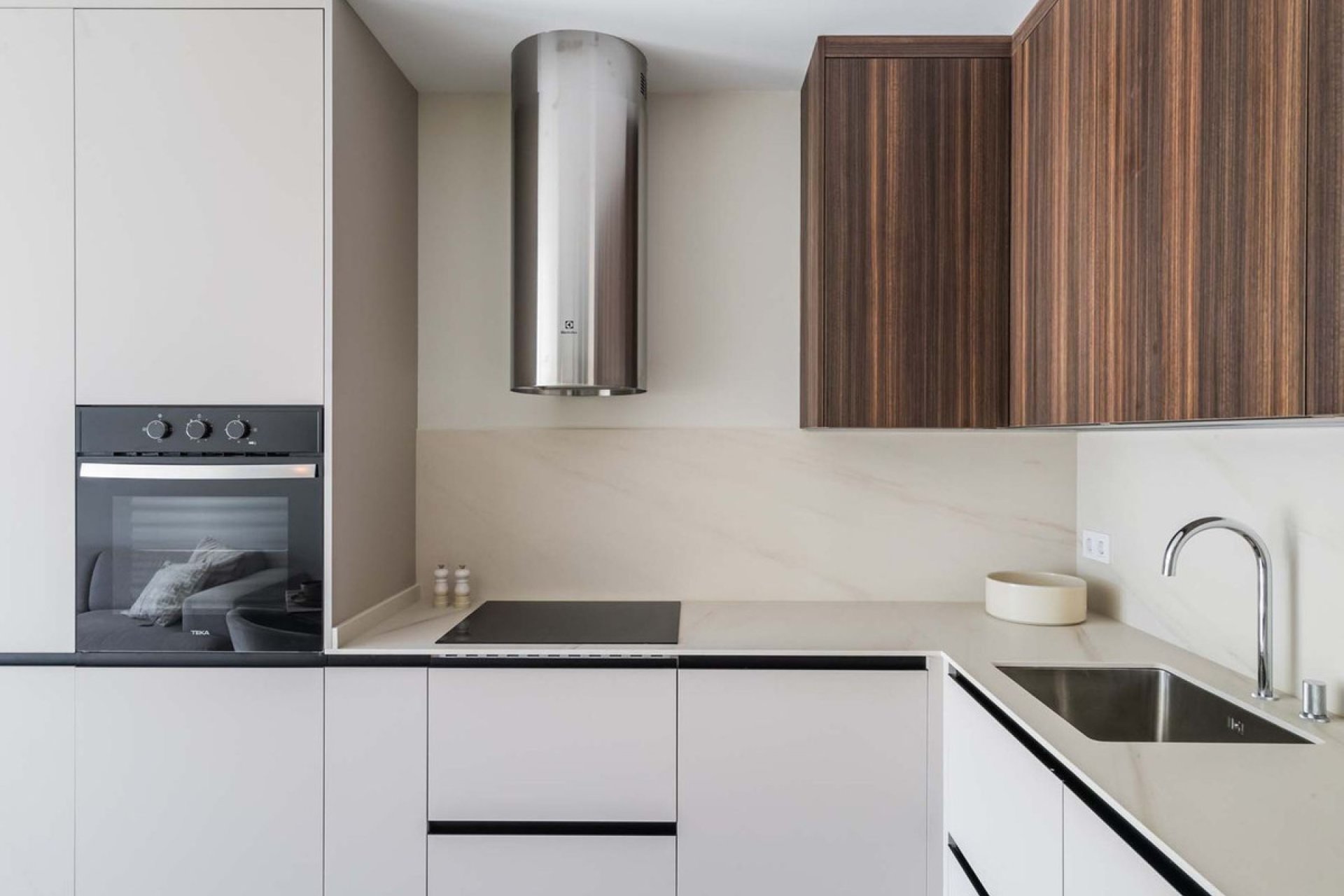 The open-plan layout connects a fully equipped kitchen with a bright and inviting living area – perfect for entertaining or family gatherings.