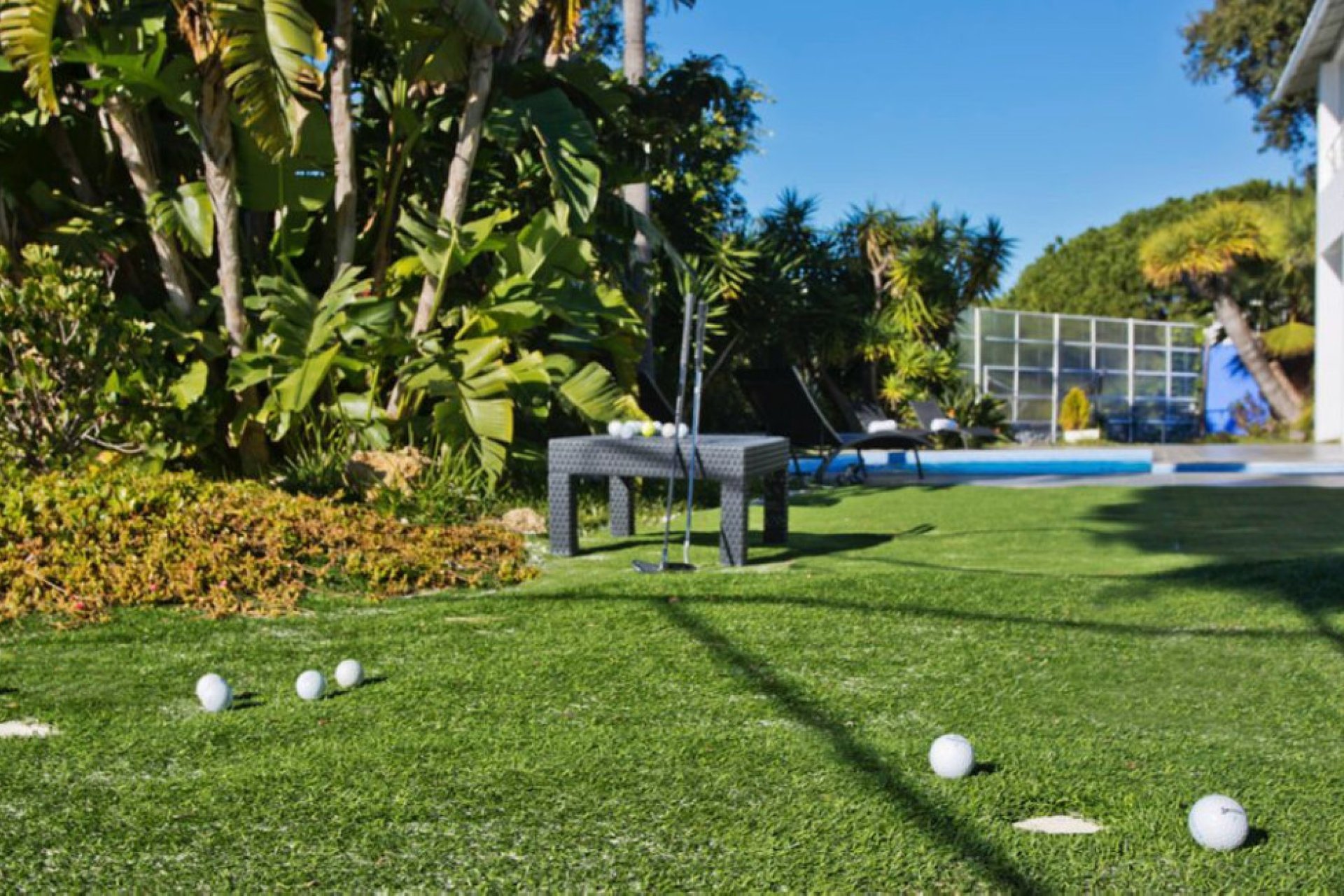 Unique eight bedroom south facing villa, in a tranquil area of Elviria, Marbella. Located close to the beach, schools and local amenities, this fantastic property is also a successful operating Bed & Breakfast. The property consists of the main house, two apartments with independent access and an additional two bedrooms with access from the garden. The house is equipped with everything you would need for year-round living or holiday rentals including a heated swimming pool, golf putting green, outdoor sauna, and BBQ area. The terrace and solarium boast stunning sea views. Other features include hot and cold air conditioning, private parking space, storage area and solar panels that supply the electricity to run the whole property, as well as a back-up generator.