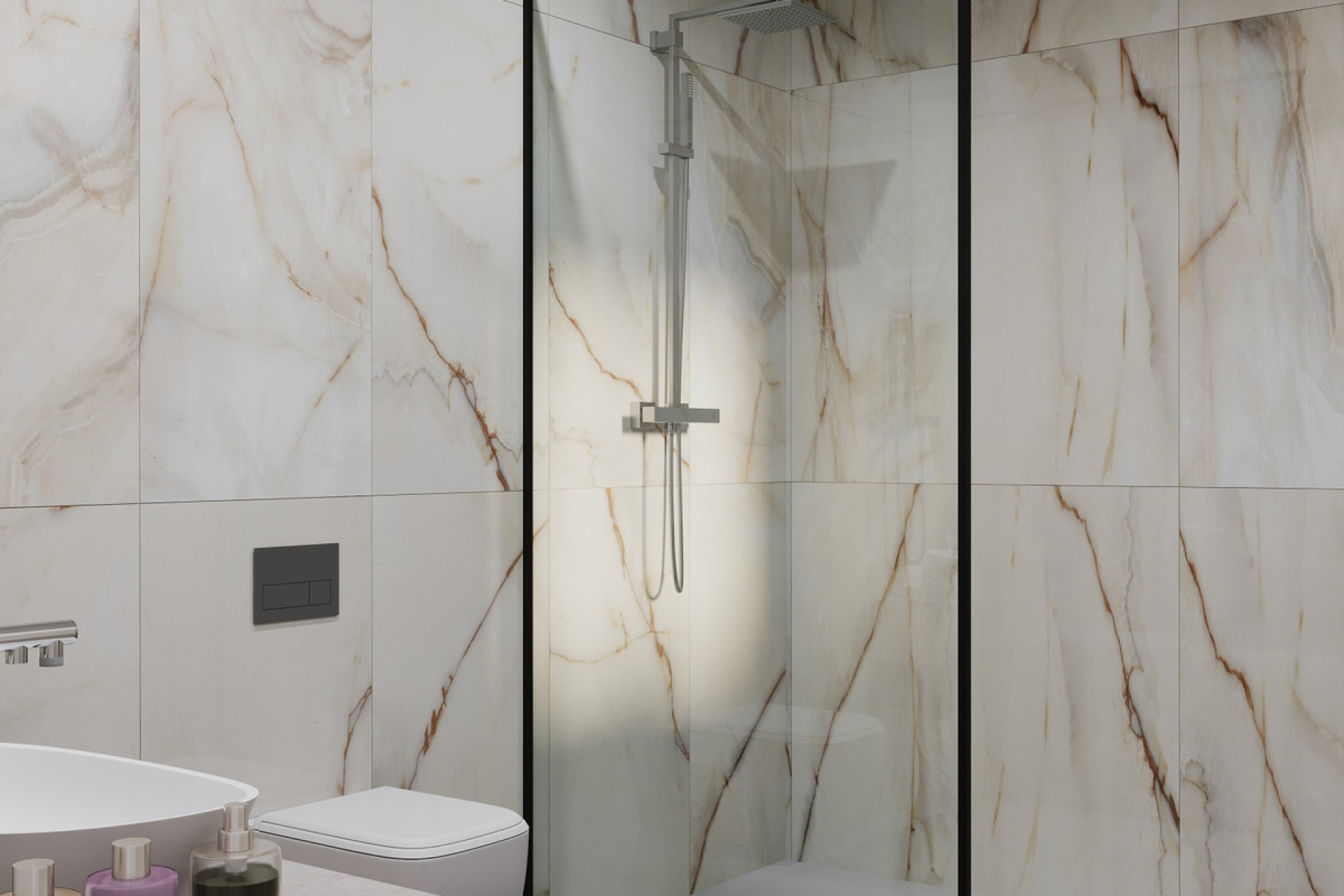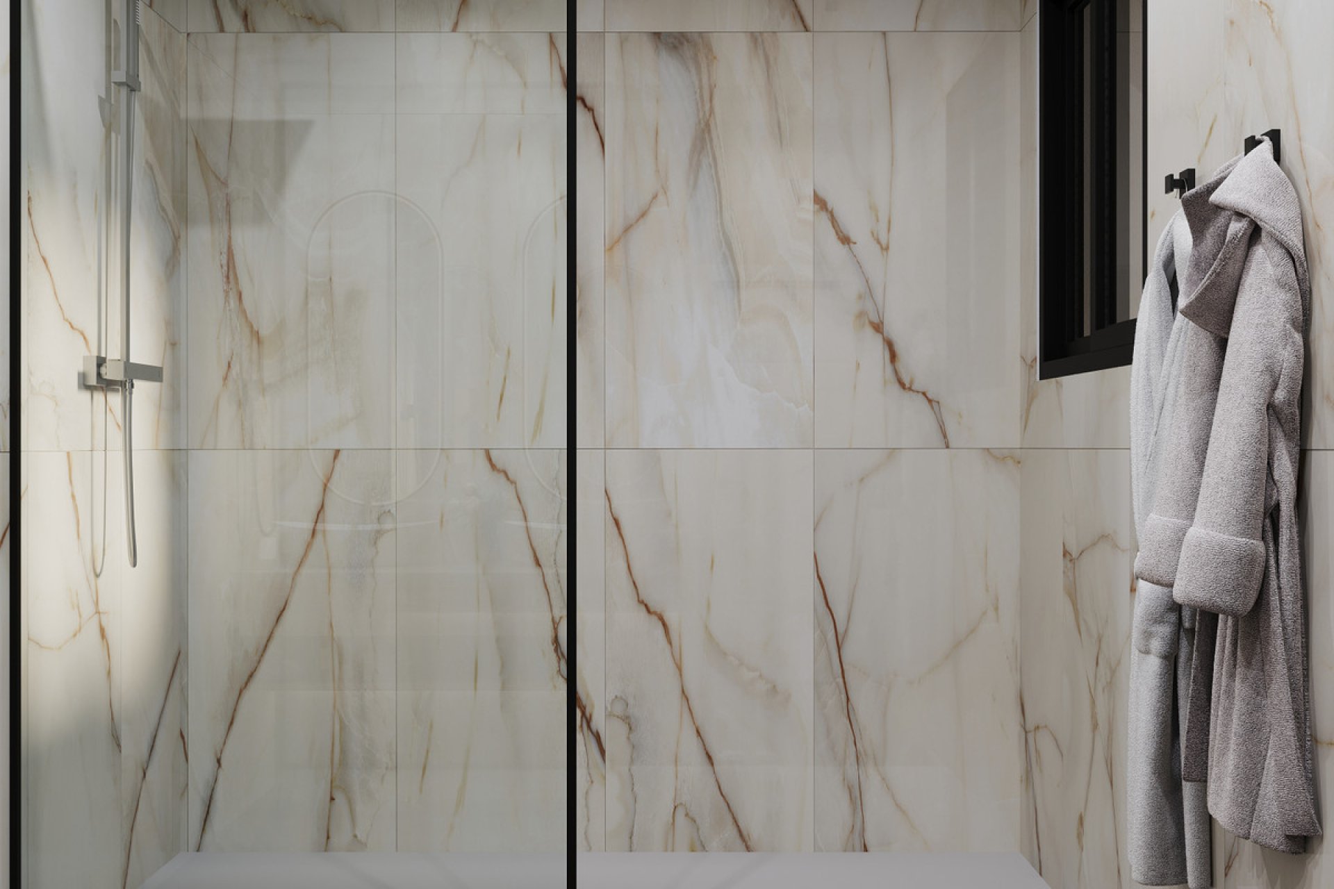 It also includes an impressive designer kitchen, a guest toilet, and a generous terrace with direct access to the garden and pool area.