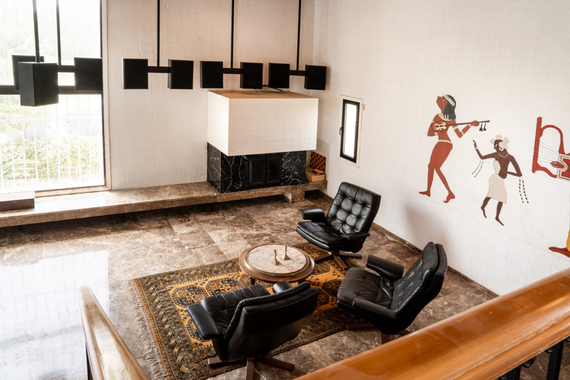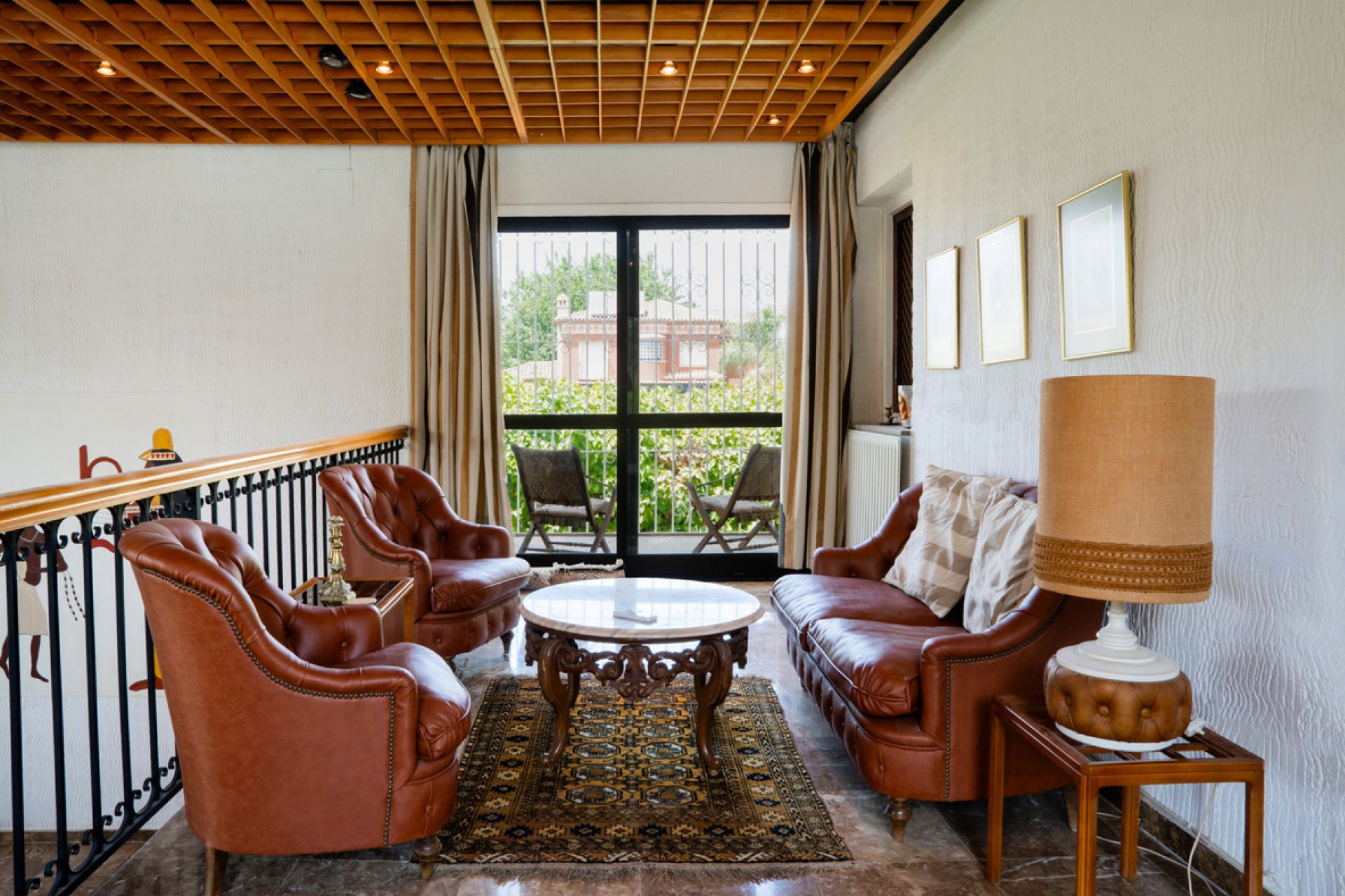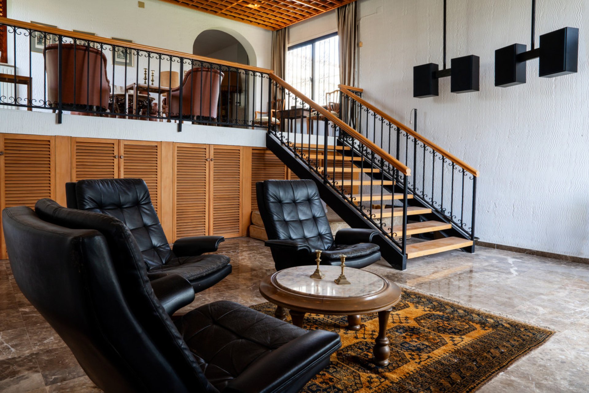 Set on a 1,216 m² southwest-facing plot, the property offers 415 m² of built space, spacious living areas with high ceilings in parts of the home, and the warmth of two fireplaces, creating a home filled with light and character.