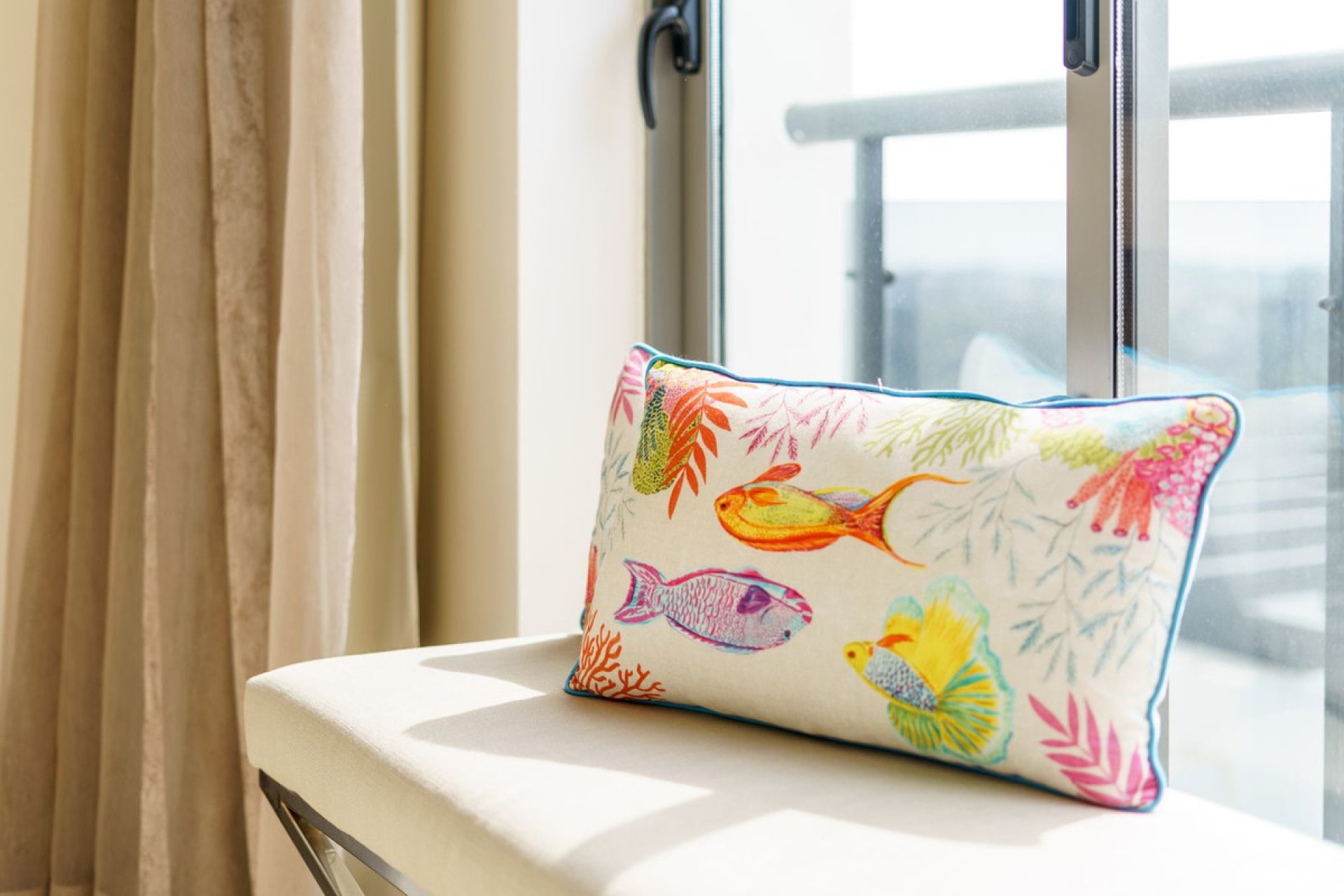 The spacious open-plan design features a bright living area opening onto a large terrace, three elegant bedrooms, and a fully equipped kitchen. Residents enjoy access to a serene swimming pool, padel courts, and beautifully landscaped surroundings.