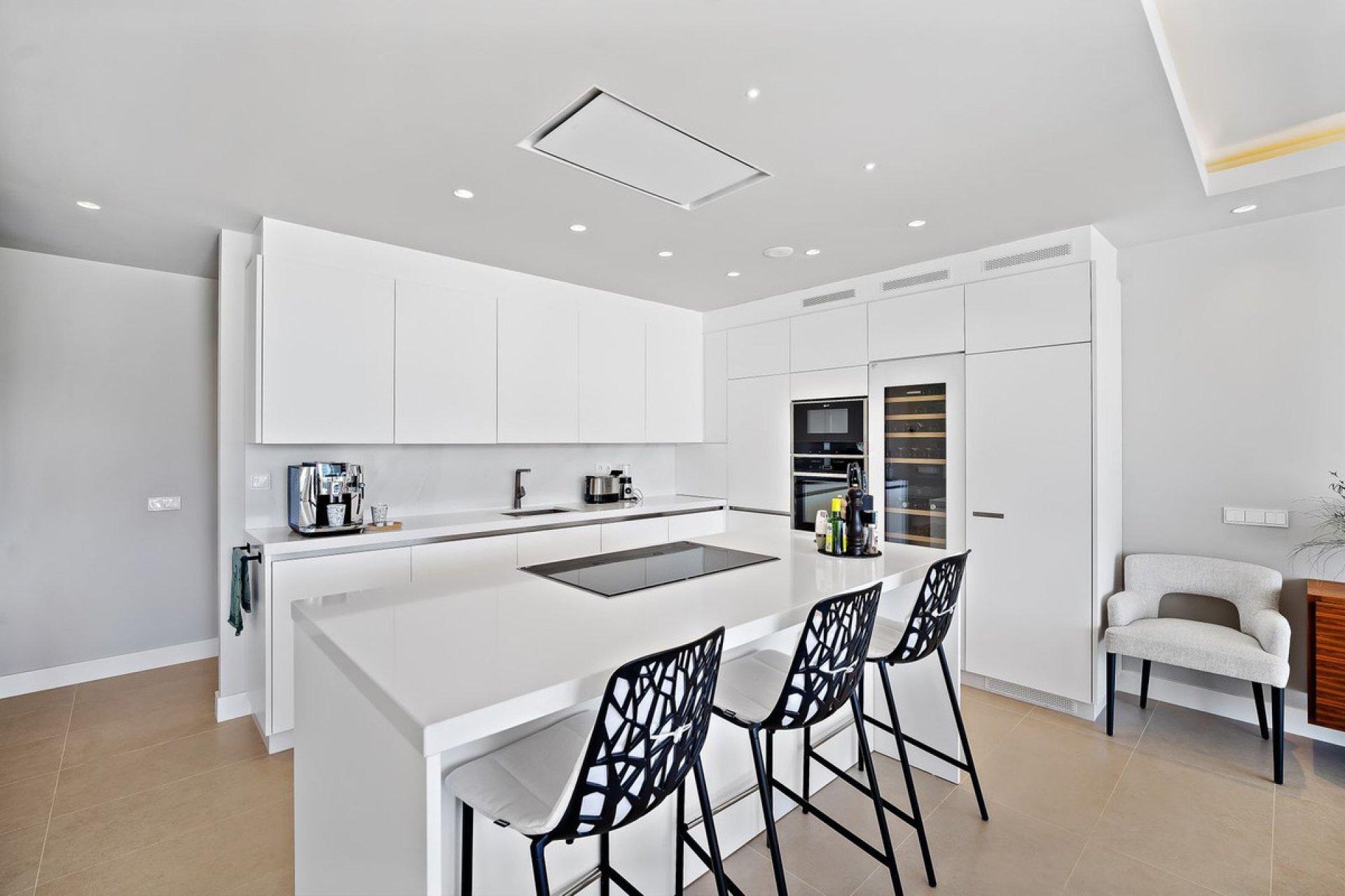 On the ground floor, you will find a spacious lounge with a cosy dining area alongside with direct access to the terrace. The dining area is connected to the open kitchen which offers the laundry room and separate toilet behind it. On the first floor you have 2 beautifully decorated spacious bedrooms en suite with access to the first-floor terrace and panoramic sea views. On the min 1 there are 2 more spacious bedrooms with a shared bathroom.