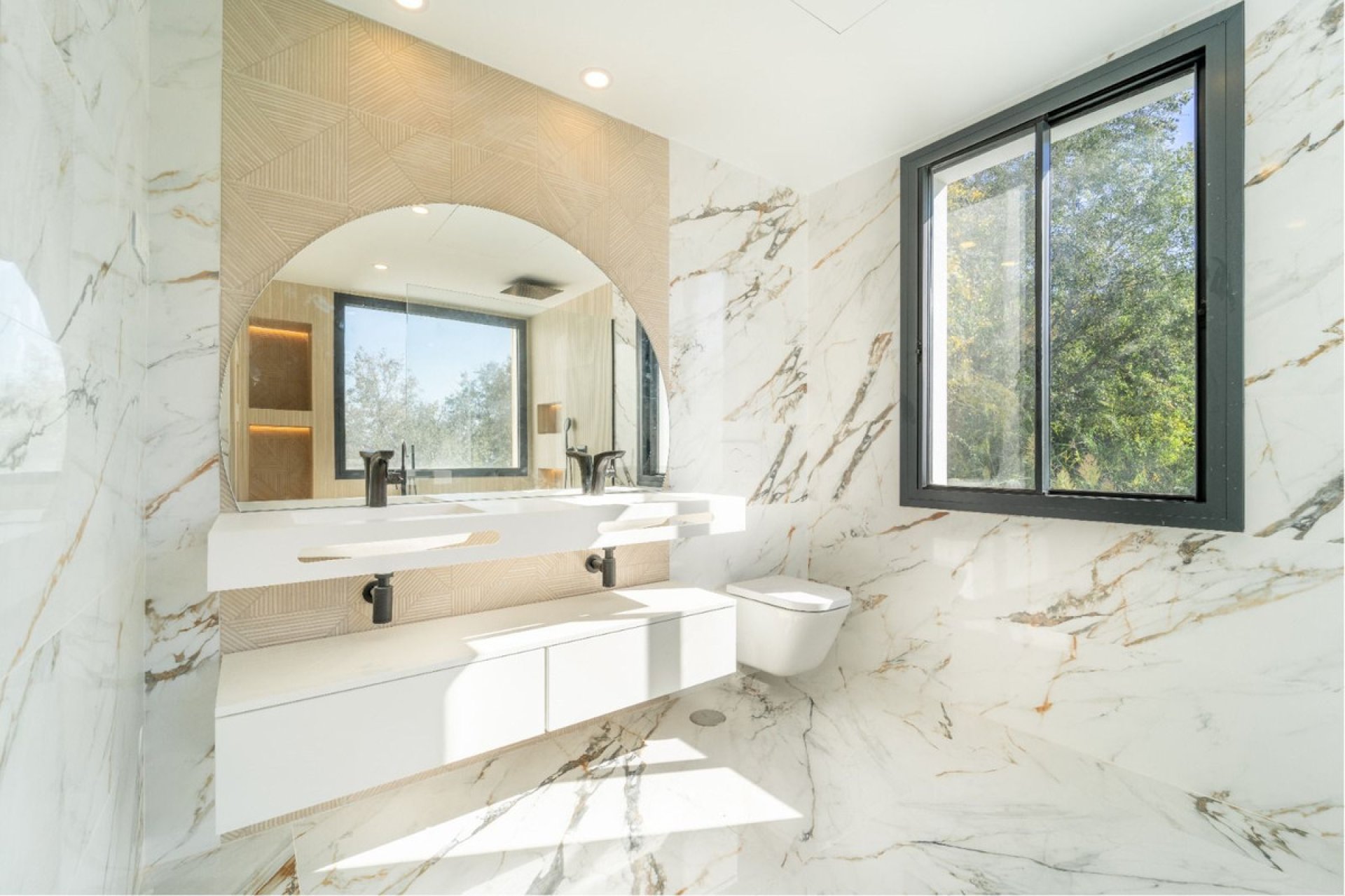 Plot of 1000m2 – Constructed 527,02m2 – Divided in to 4 parts as follow: 1. Basement: where the person who will own this can make a beautiful space divided in to 3 or 5 activities as per our idea (Gym, Spa, Gaming zone, Cinema Hall, also an office in case you would like to work from home). The full villa has floor heating system installed. Ground Floor: composed of beautiful views towards garden and the pool , there is amazing greenery of the villa itself, with a chill zone to relax, equipped kitchen, spacious living room and dining room. There is one large room with ensuite bathrooms, First Floor: includes large master bedroom with master bathroom and additional 2 bedrooms with ensuite bathrooms all has small terrace with views. Covered Floor: there will be solar system installed for the full villa, which will be used for the water and also light, there is a terrace also on the rooftop with amazing views also to the sea.