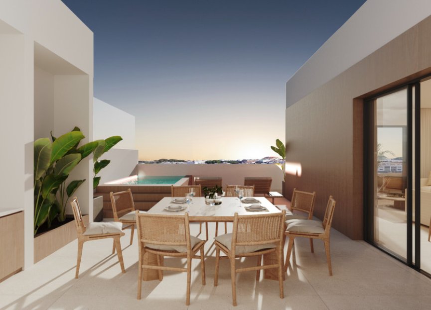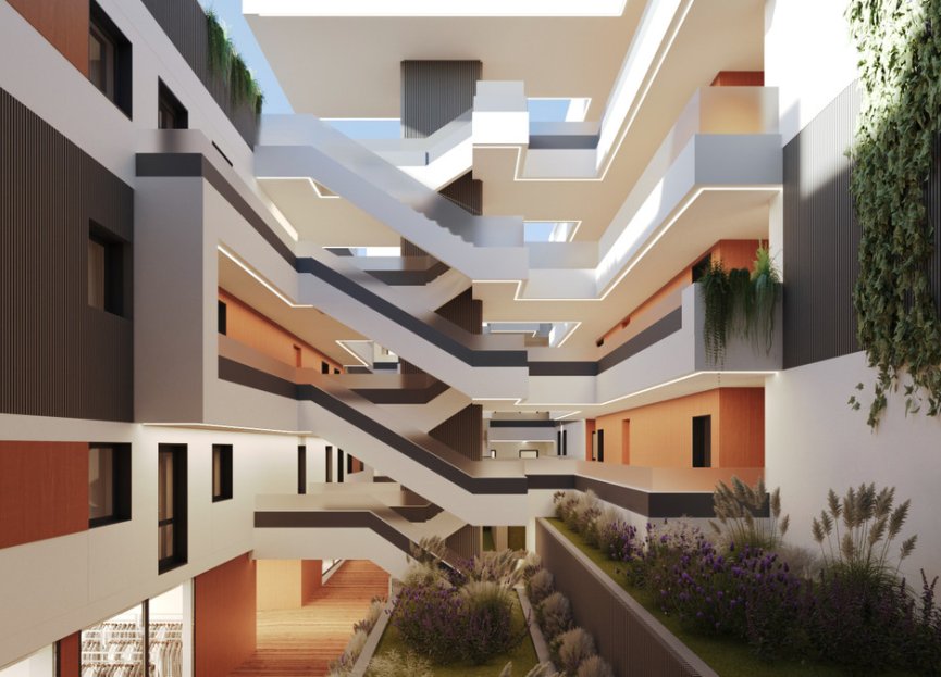 The development in San Pedro de Alcantara is made up of 35 homes with 2 and 3 bedrooms, with duplexes with terraces-solariums. Garages in the basement and commercial premises on the ground floor, in a building with avant-garde architecture, with first-class qualities and an exceptional location in the heart of the Costa del Sol.