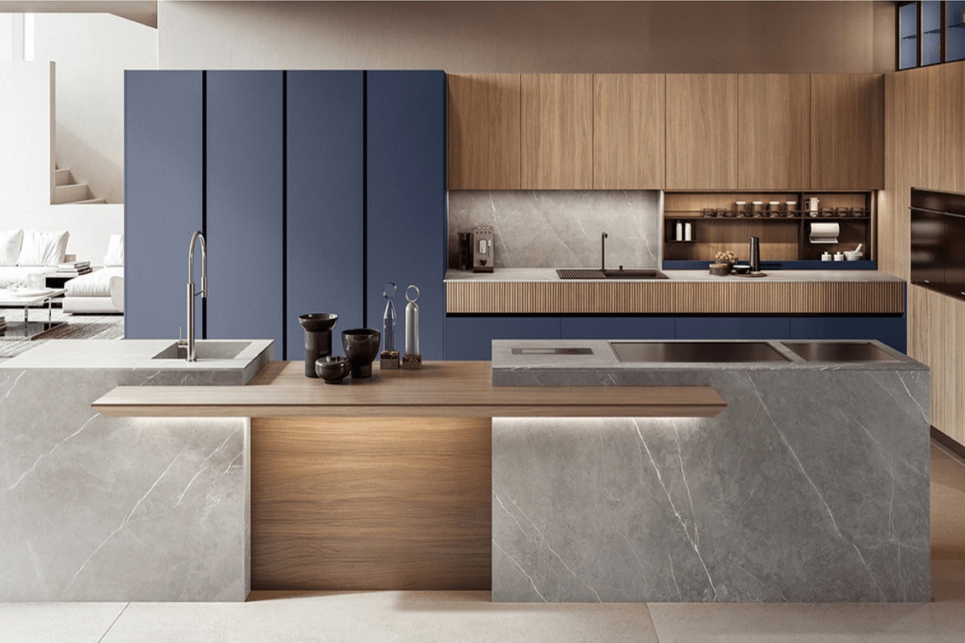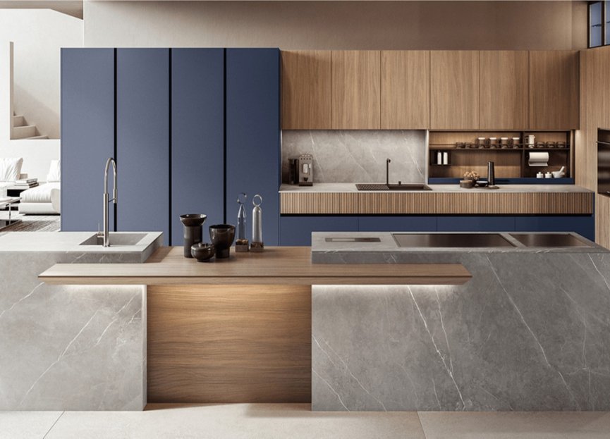 - Fully fitted kitchen with aluminum frame doors and covered with COVERLAM