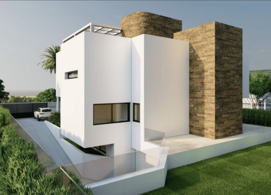 This property will be built on 3 floors with a PVE panoramic elevator consisting of an entrance hall, 3 bedrooms with ensuite bathrooms, and a garden with a pool , a few trees and scrubs and a pool.