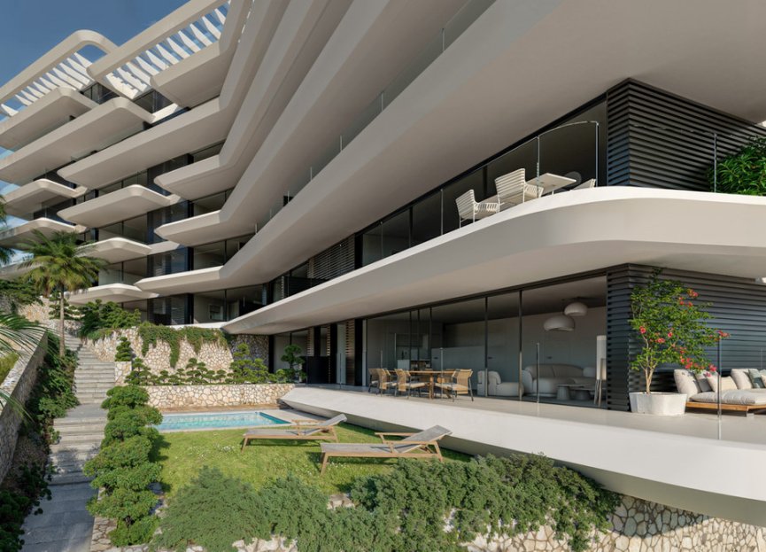 This development offers 36 beautiful single-storey homes with large rooms, the option of 2 or 3 bedrooms, 2 bathrooms and large terraces with beautiful panoramic views. They have a fully equipped kitchen, air conditioning, heating and double glazing. The ground floor properties have a garden and private swimming pool, and the penthouses have a solarium and swimming pool. The communal facilities include an indoor and outdoor swimming pool, gym, spa, co-working and cinema room.