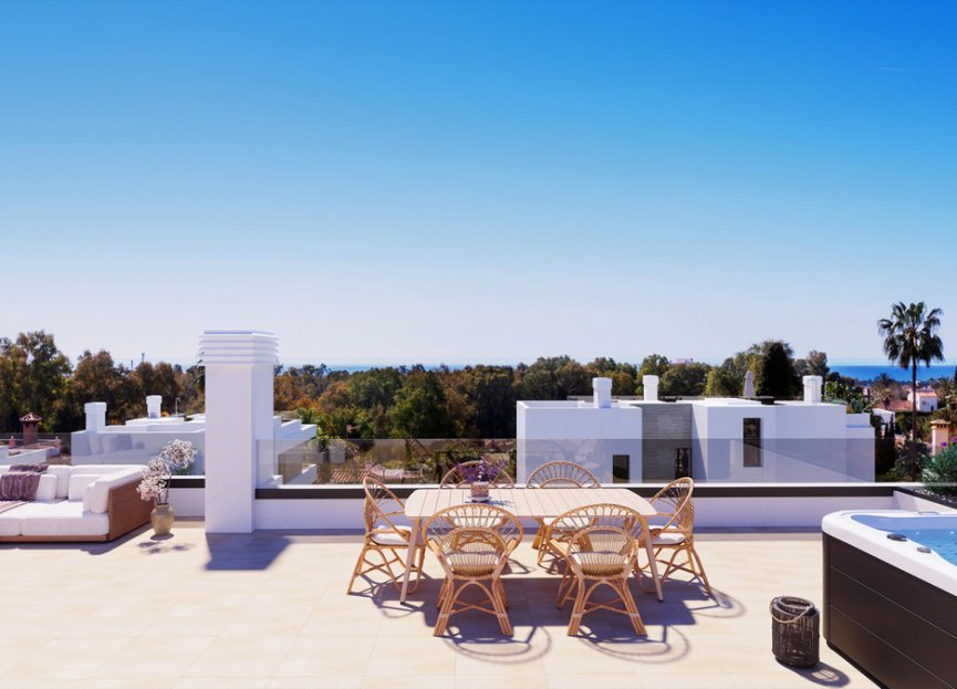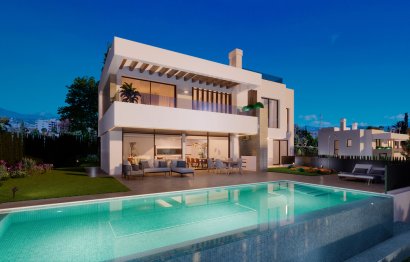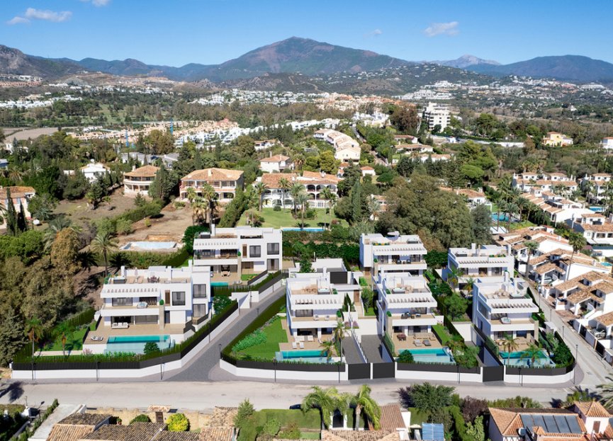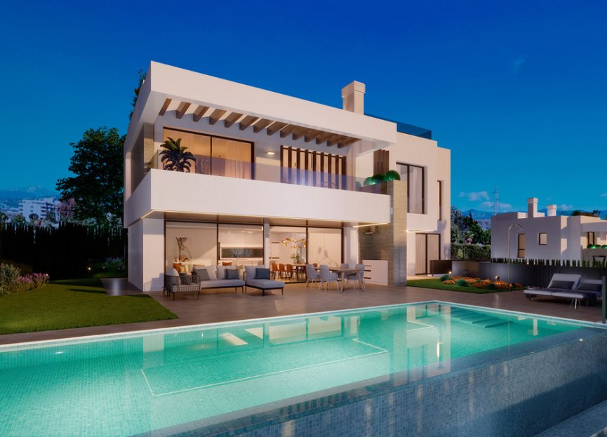 New development of 7 luxury south facing detached villas in a prime location of Estepona, in walking distance to Atalaya Golf Club and within a short drive to all amenities, the beach and Puerto Banús. Boasting large private pools and gardens, 3 or 4 en-suite bedrooms, full basement and garage for 2 cars, rooftop with sea views, extensive terraces, double height living room ceilings, top brands and qualities, underfloor heating throughout and aerothermal heating technology, full cost-free interior customization and interior design service, flexible interior architecture, and full after-sales service. With the guarantee of one of the leading and longest established European developers.